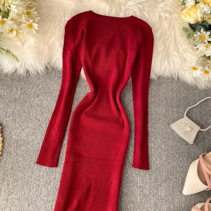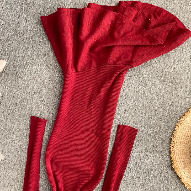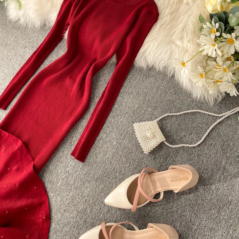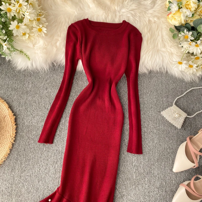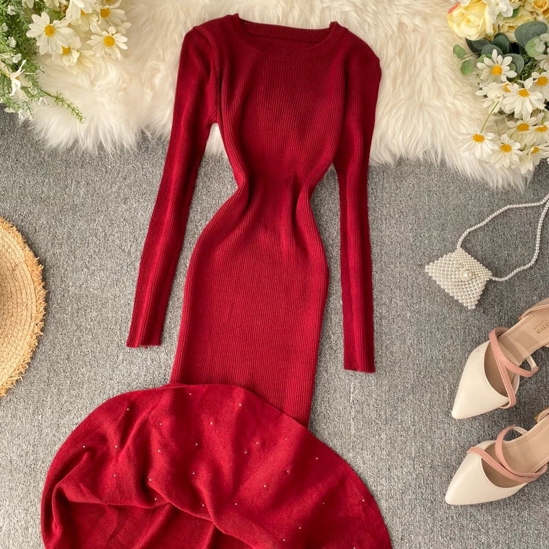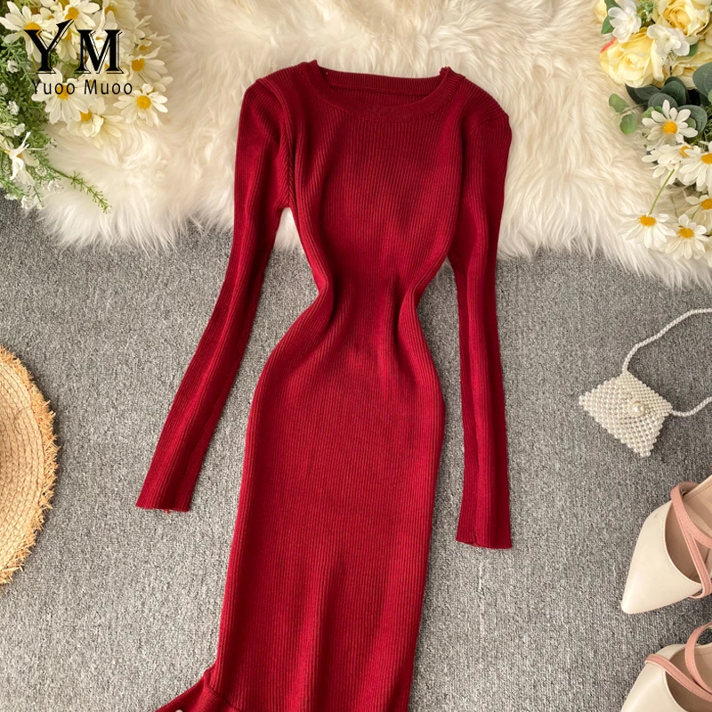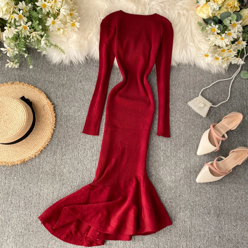 Женское трикотажное платье YuooMuoo, с асимметричным бисером и рюшами, осень платье миди Русалка, элегантное, вечернее платье с длинным рукавом