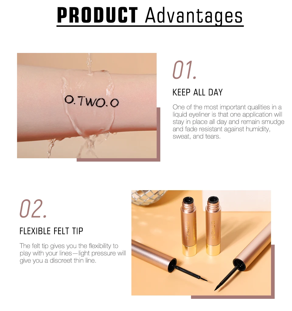 O.TWO.O жидкая подводка для глаз, водостойкая, ультра тонкая кисть для глаз, долговечная, быстросохнущая, натуральная подводка для глаз, косметика