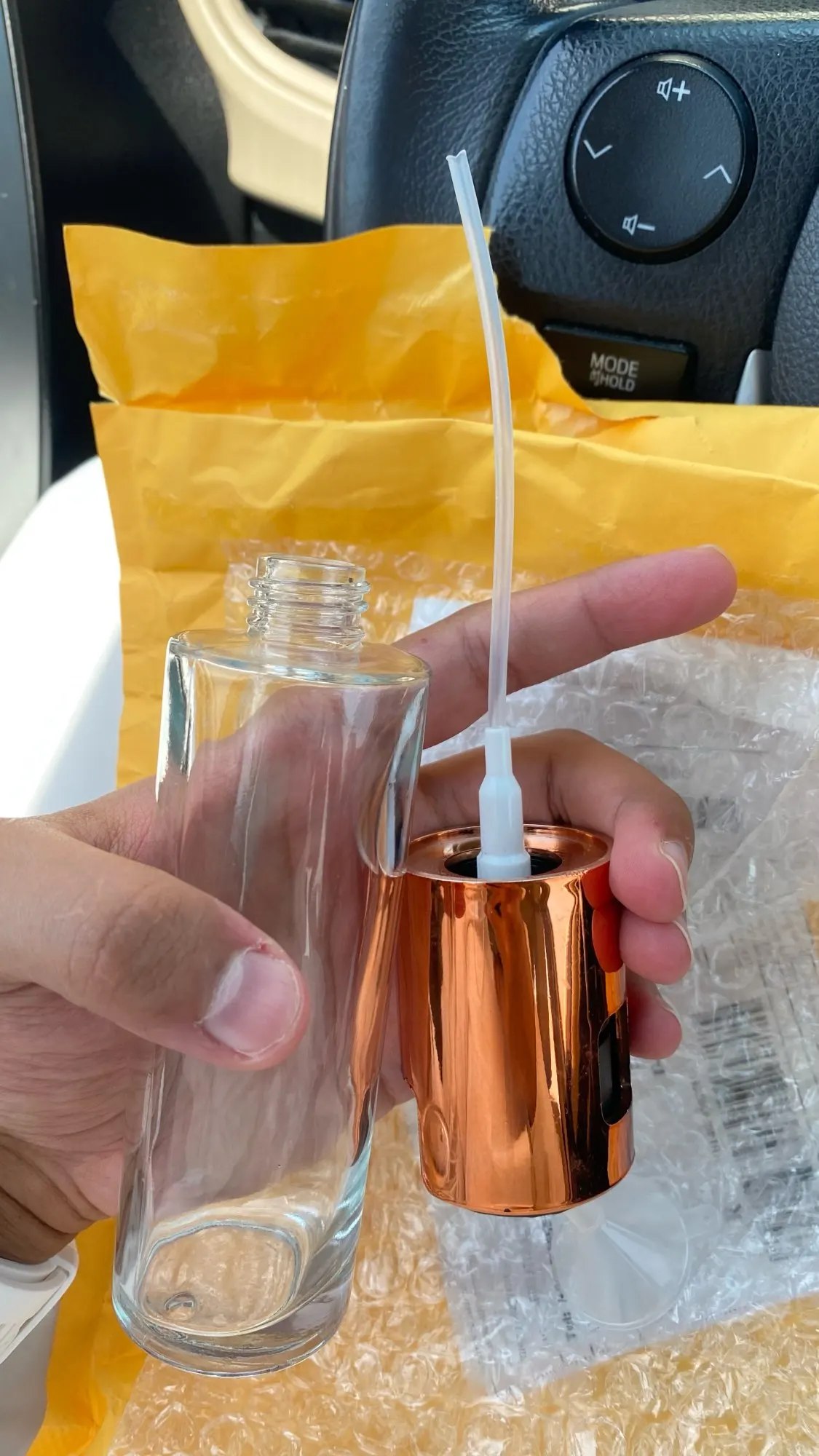 Бутылочка стеклянная, крышка и распылитель пластиковые, хлипкие