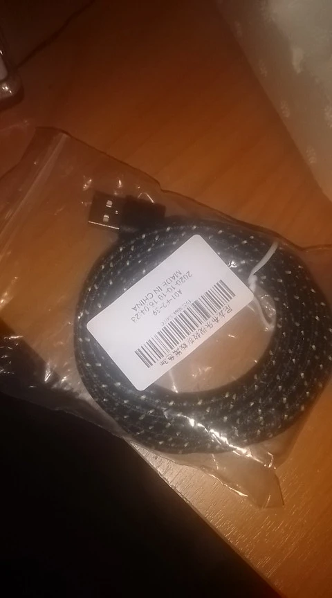 Шел долго, максимальный срок. Описанию соответствует, плетёная оплётка, но пластик на разъёмах так себе. Пришел мелким пакетом типа письма, почтальоны не стали запариваться и тупо кинули его в не закрывающийся почтовый ящик :) Благо соседи нормальные.