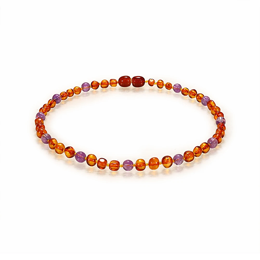 Натуральный анальгетик, янтарь поможет успокоить ребенка, не обращаясь к лекарственным средствам. Янтарь-это окаменелая смола, а не камень. Поэтому он теплый на ощупь, а также очень удобный и светильник. Ношение Прибалтики ожерелья из янтаря на коже может иметь успокаивающий и успокаивающий эффект на прорезывание зубов младенцев и малышей. Когда янтарь носится на коже, тепло кожи выделяет небольшое количество целебных масел из янтаря, которые затем впитываются через кожу в кровоток. Противовоспалительные и терапевтические свойства янтаря также признаются аллопантической медициной. В Австрии, Швейцарии и германии вы найдете янтарные ожерелья для прорезывания зубов, продающиеся в местных аптеках.