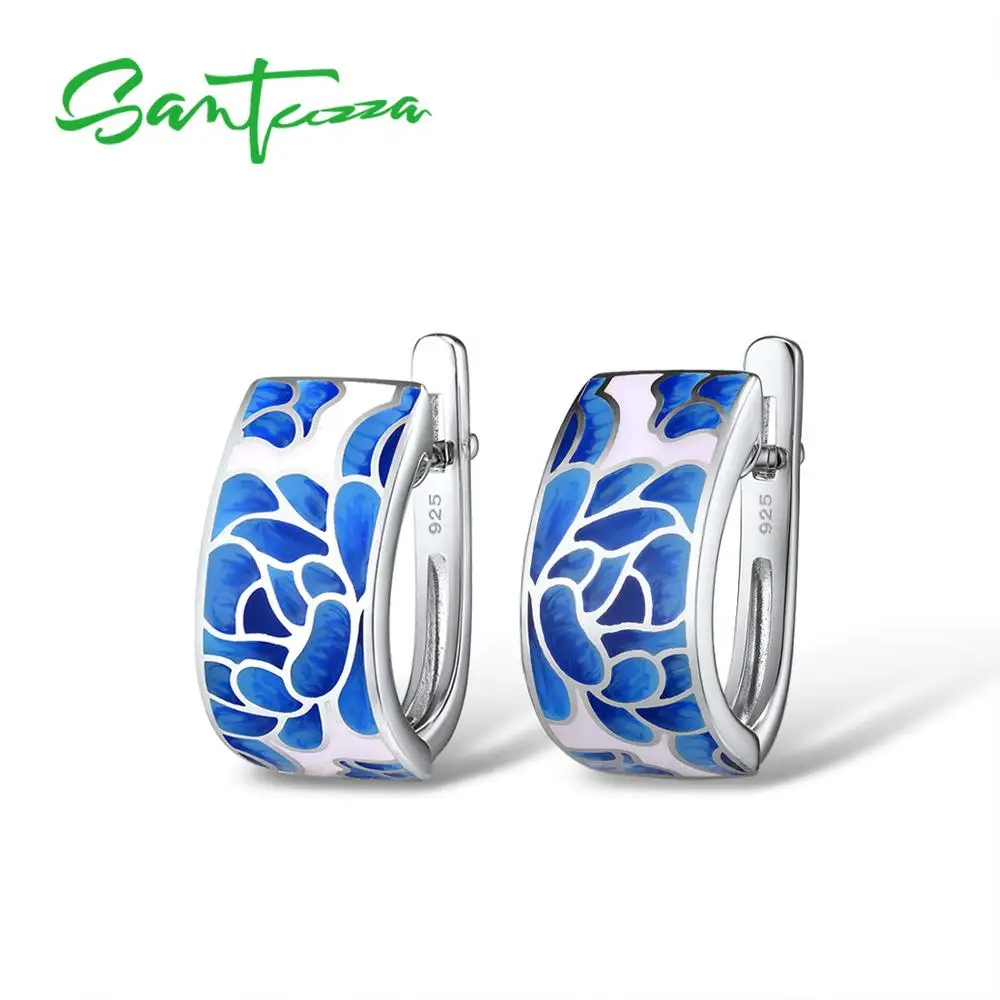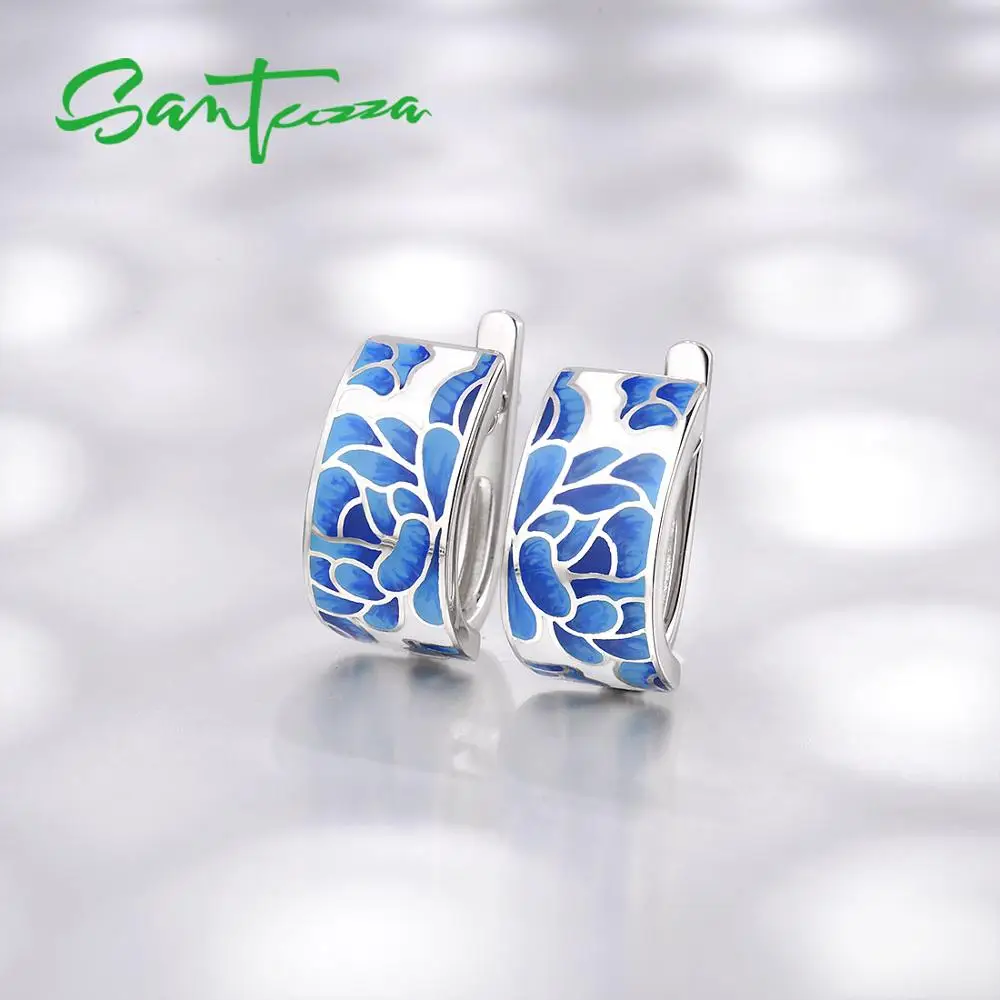 Женские серебряные серьги SANTUZZA, из серебра 925 пробы с синими цветами и эмалью, модный подарок, изящная бижутерия ручной работы