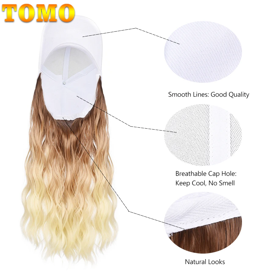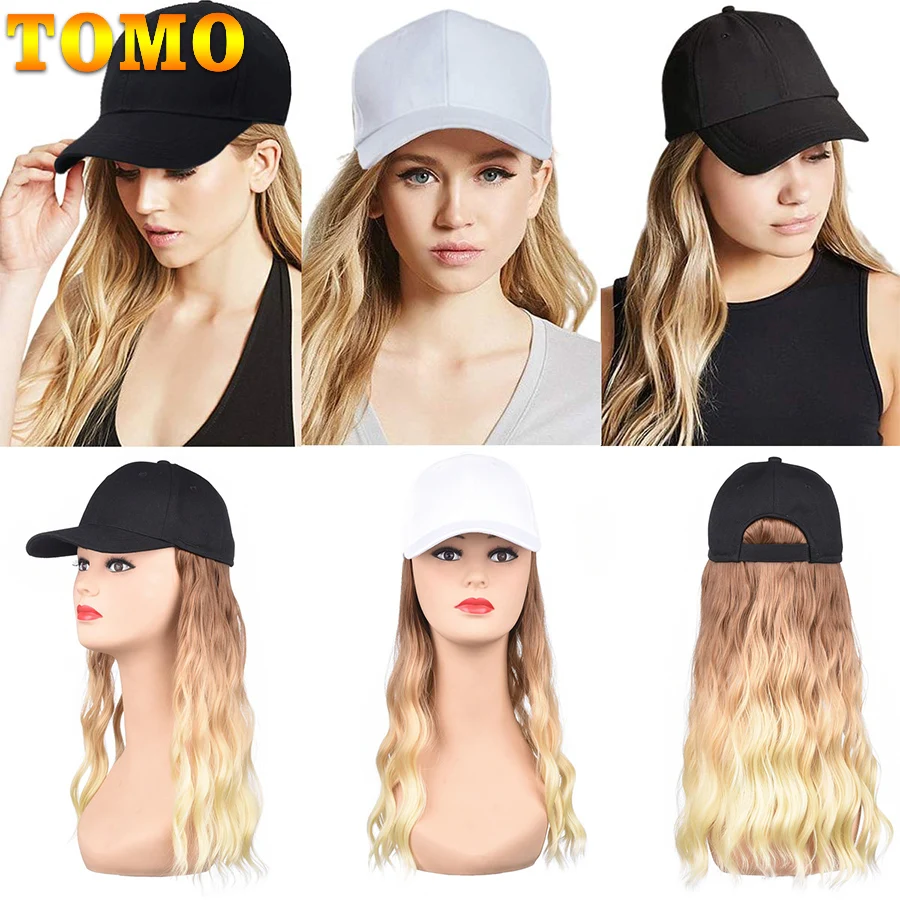 TOMO волнистые Бейсбол парик синтетические натуральные волнистые волосы парик черный шляпы парики Кепки с волосы естественно подключить Бейсбол Кепки регулируемый