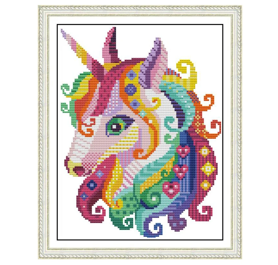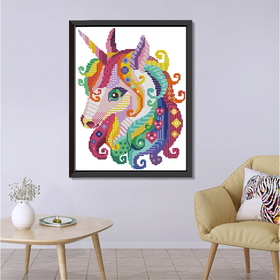 Набор для вышивания с изображением единорога из мультфильма, цветной холст с рисунком для домашнего декора