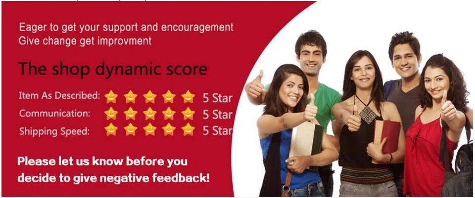 1. Если вы получили поврежденный или неправильный продукт, вам не нужно возвращать товар. Вы можете запросить возврат, и мы предоставим вам полный возврат средств. Или свяжитесь с нами, чтобы повторно отправить товар. 2. Если посылка потеряна во время транспортировки, мы вернем всю сумму. 3. После того как заказ будет отправлен, мы будем заполнять номер отслеживания в заказе. Вы можете проверить его информацию отслеживания на веб-сайте «www.17track.net» (скопируйте в браузер, чтобы открыть). Если время защиты заказа истекает, пожалуйста, свяжитесь с нами, и мы можем продлить срок защиты заказа для вас. 4. Если вы покупаете нашу продукцию оптом, мы предоставляем оптовые цены. Или бесплатная экспресс-доставка, которая занимает всего 3-7 дней. 5. Мы поддерживаем прямую доставку. Вы заполните адрес, Имя и номер телефона вашего клиента в заказе. Мы отправим заказ непосредственно вашему клиенту. Мы не оставляем никакой информации, счетов-фактур и рекламных акций о нашем магазине в заказе. Мы можем предложить скидки, когда у вас будет достаточно заказов в месяц. 6. Мы часто предоставляем купоны и скидки старым клиентам и поклонникам. Чтобы вы могли нажать «+ Follow» на главной странице нашего магазина, чтобы насладиться предложениями, которые мы предлагаем в будущем. 7. Если вы удовлетворены нашими продуктами и услугами после получения заказа, пожалуйста, дайте нам 5 звезд отзывы. Если у вас есть какие-либо вопросы о заказе, пожалуйста, свяжитесь с нами вовремя, и мы решим его для вас.