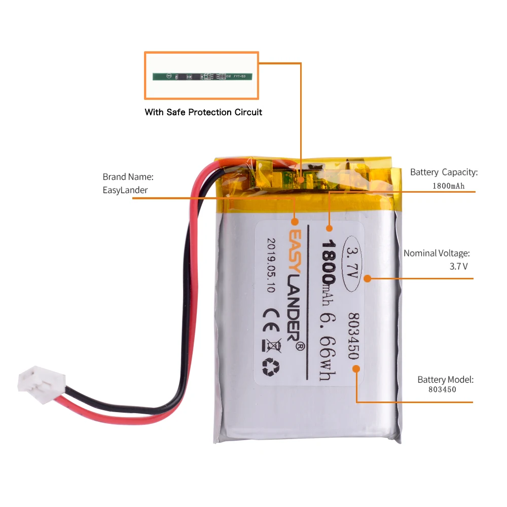 JST PH 80345 2,0 мм 2pin 3,7 V 1800mAh литий-полимерная LiPo аккумуляторная батарея с разъемом для MP3 DVD PAD камеры GPS ноутбука