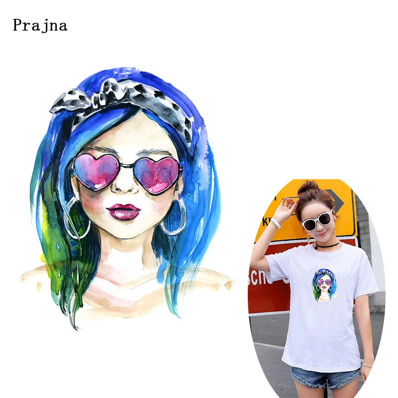 Милая мультяшная девушка Prajna, нашивка сделай сам, аксессуары, A-уровень, моющиеся, теплопередающие наклейки, Аппликации, горячая виниловая синяя одежда