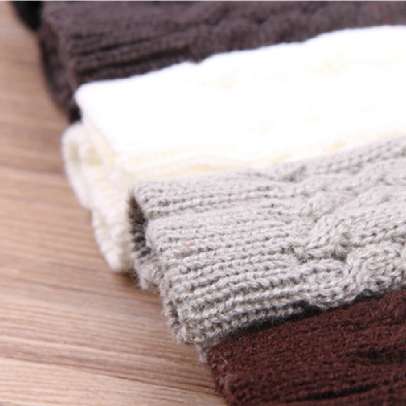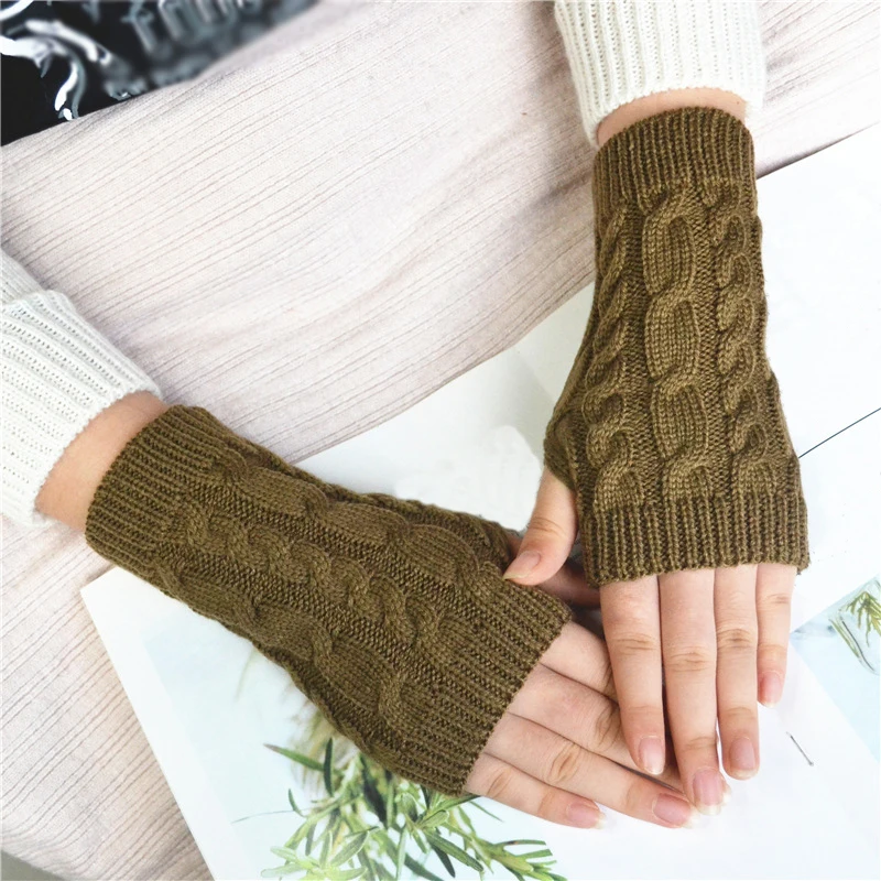 Вязаные перчатки без пальцев, зимние, теплые, однотонные