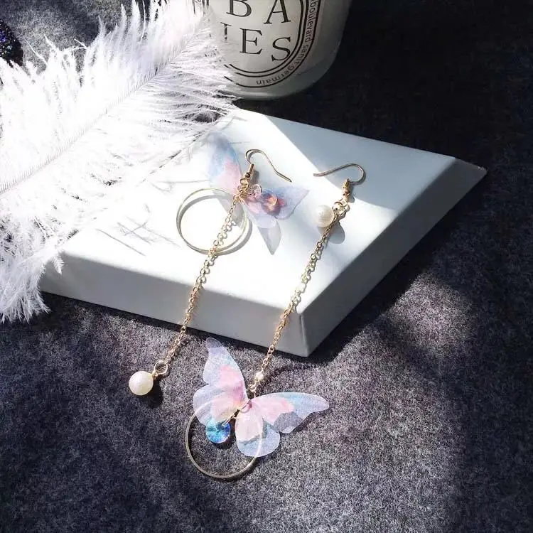 Новинка 2020, Лидер продаж, длинные серьги в виде бабочки из сказочной пряжи для девушек, украшение для ушей, модные круглые серьги из сплава