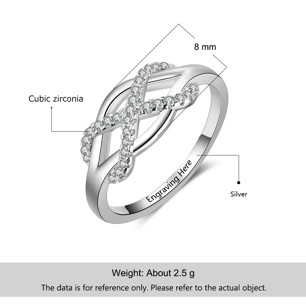 Женское кольцо вечности из серебра 925 пробы с гравировкой на заказ