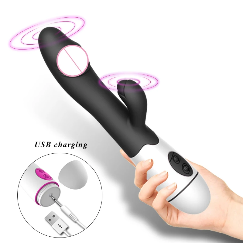 Женский мастурбатор 30 скоростей фаллоимитатор, вибратор-кролик, USB-зарядка, массажер с двумя двигателями для точки G и клитора, интимные игрушки для женщин