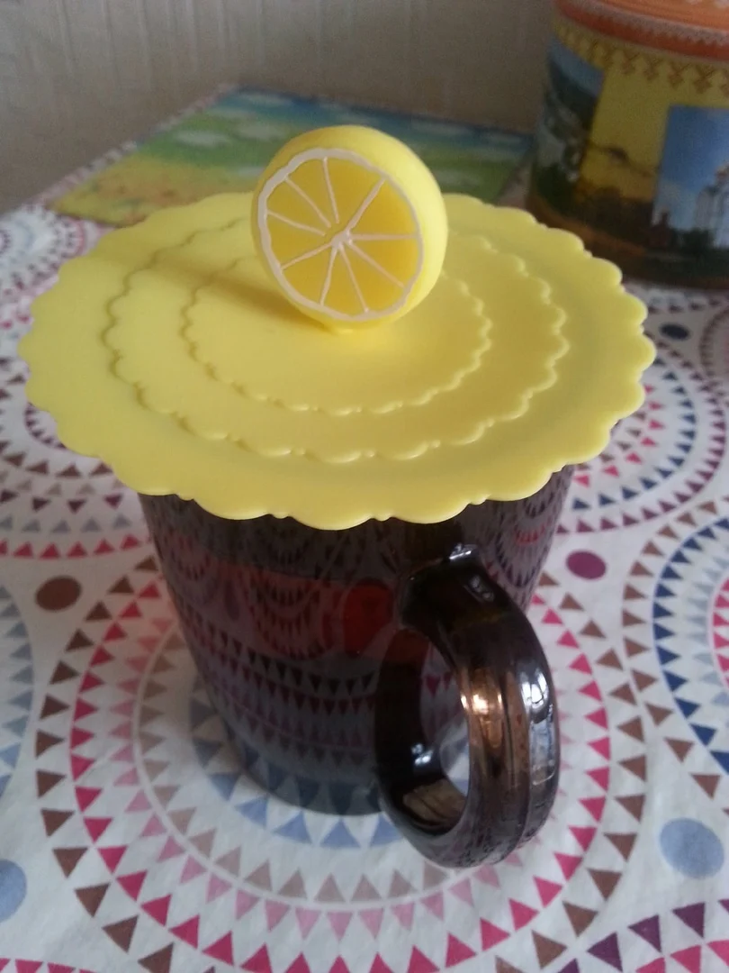 Очень удобная вещь. Всегда заваривала чай в кружке, прикрывала блюдцем. Сколько их разбила, сколько перебила... Блюдце горячее, влажное от конденсата, соскользнуть опять же может. А силиконовая крышечка не разобьётся, чуть прилипает к кружке, конденсат почти не собирается. Только "лимончик" чуть туговато вставляется.Цвет ярче, но не "вырви глаз".