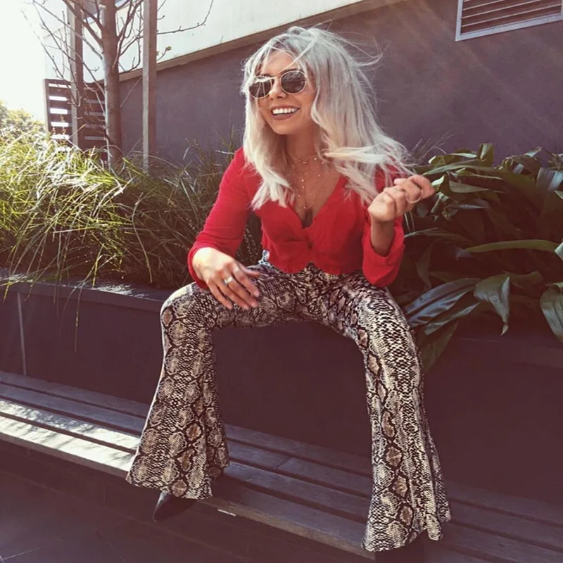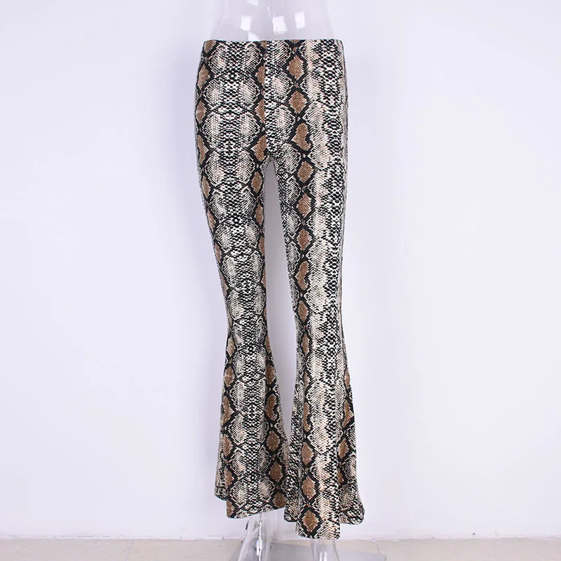 Брюки-клеш с принтом змеиной кожи, Длинные свободные штаны с эластичным поясом, праздничные брюки свободного покроя, привлекательная уличная одежда на осень