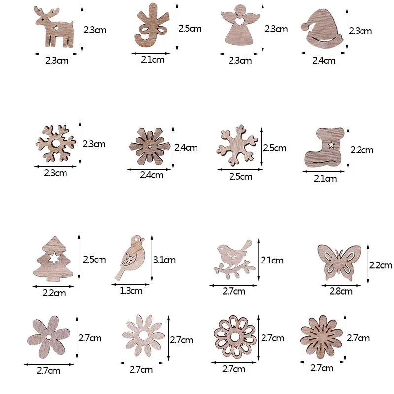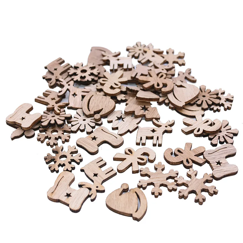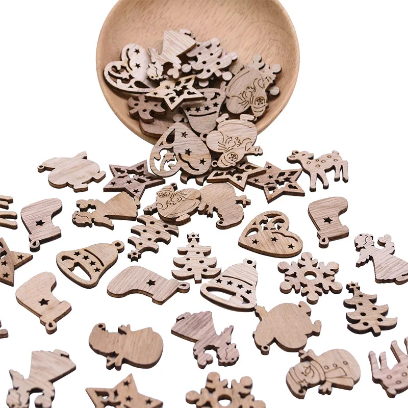 50 шт. 2021 рождественские деревянные украшения мини дерево снежинка шляпа Санта Клаус Олень Дерево для рождевечерние Декор Новогодний подарок