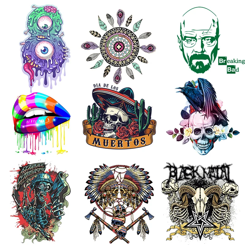Nicediy, хиппи, индийский череп, стиль панк, термонаклейки, виниловые термонаклейки, термонаклейки из ПВХ на одежду, футболку