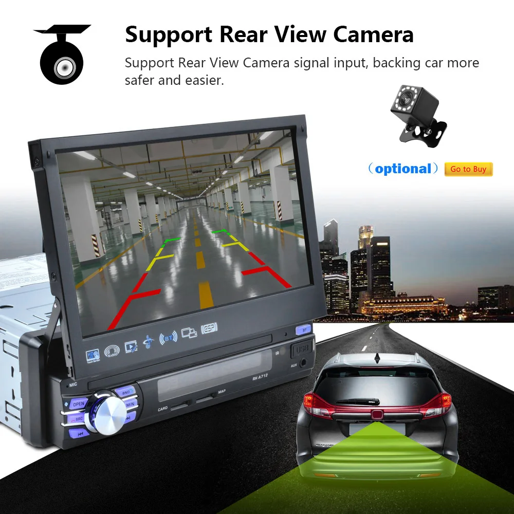 Автомобильное радио LeeKooLuu, 1 Din, Android, автомобильное радио с выдвижным экраном 7 дюймов, GPS-навигация, Wi-Fi, Mirrorlink, задняя камера, мультимедийный проигрыватель