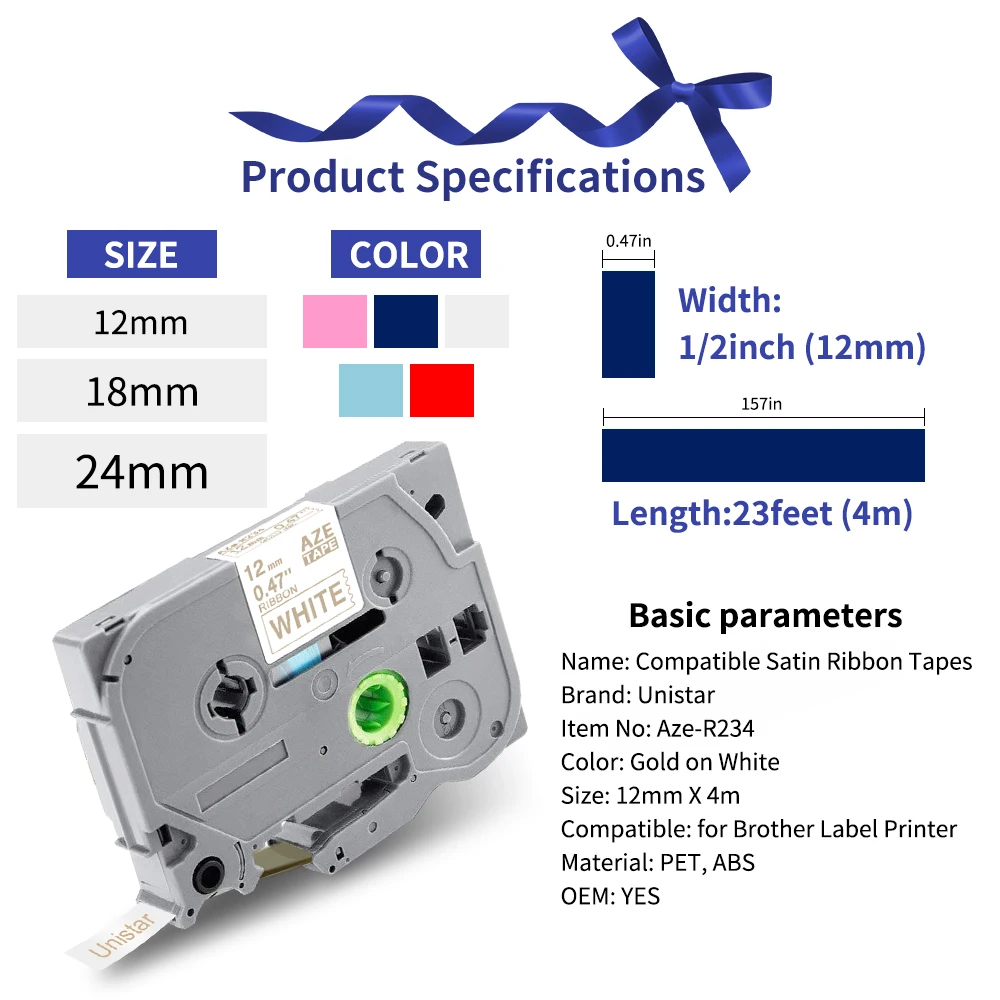 Unistar атласная лента 12 мм, совместимая с маркировочным устройством Brother AZe-R231 R234 RE34 R534 RE31