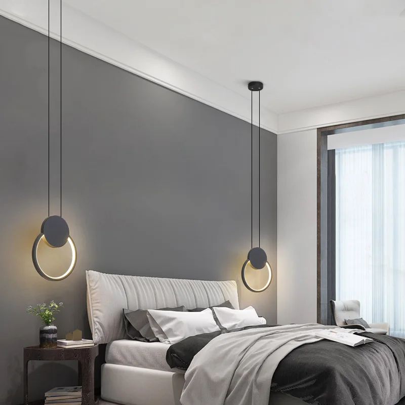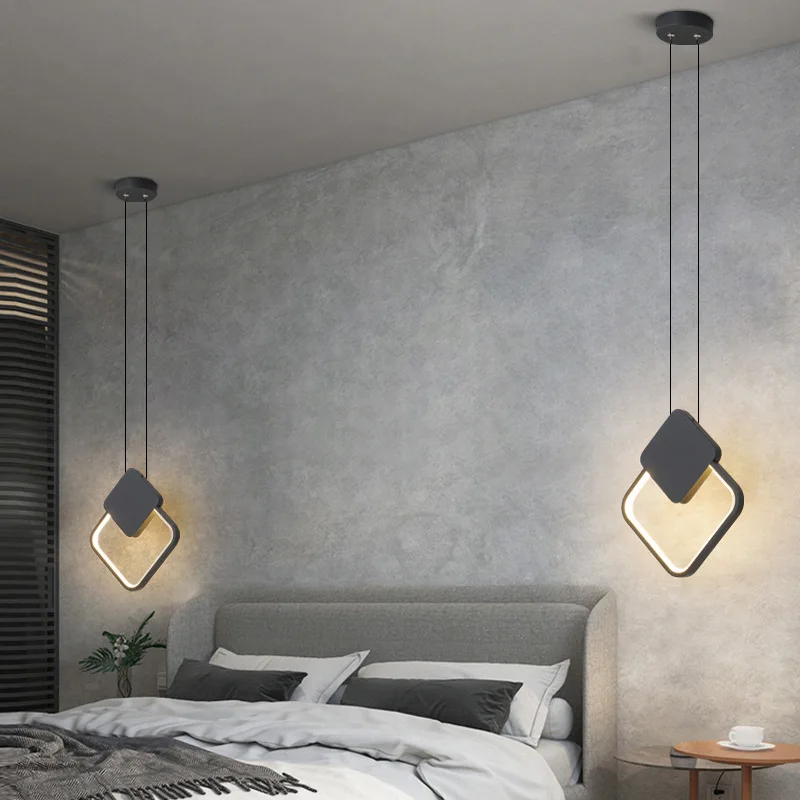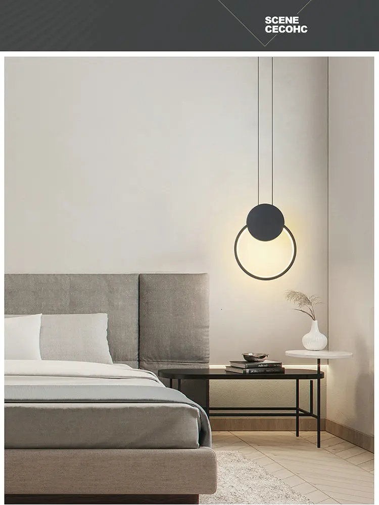 Подвесной светильник в нордическом минималистском стиле, белый, черный, квадратный, Круглый, с длинным проводом, с регулируемой яркостью, СВЕТОДИОДНЫЙ Потолочный подвесной светильник для прикроватного декора