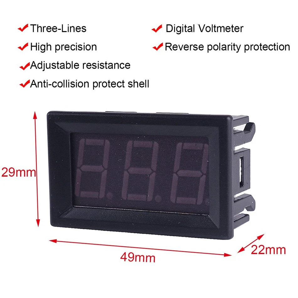 Цифровой вольтметр 0,56 дюйма с двумя проводами постоянного тока 2,5-30 в, цифровой дисплей, вольтметр с защитой от обратной полярности, точное давление, 4 цвета