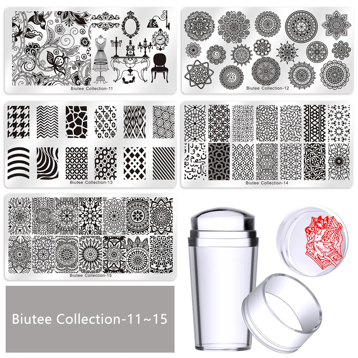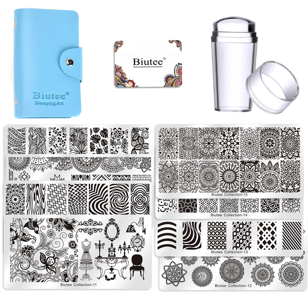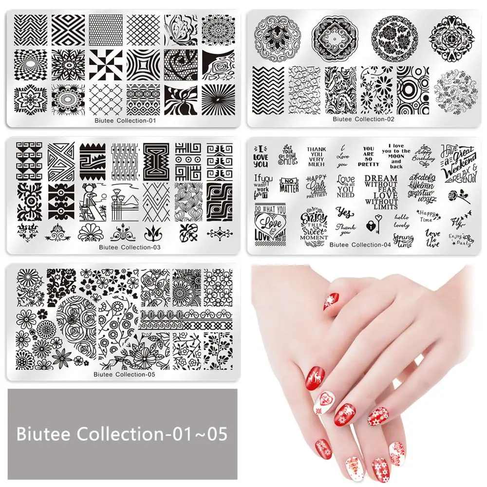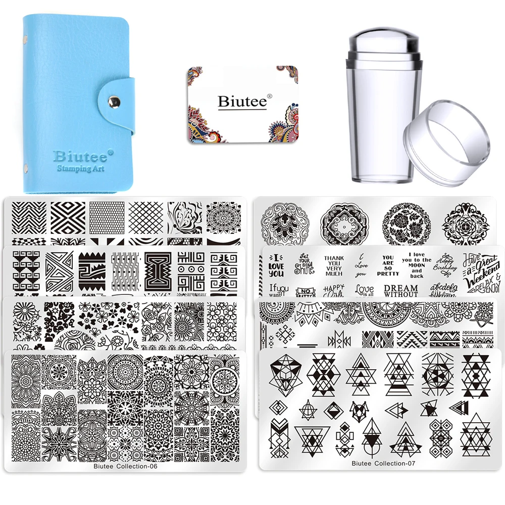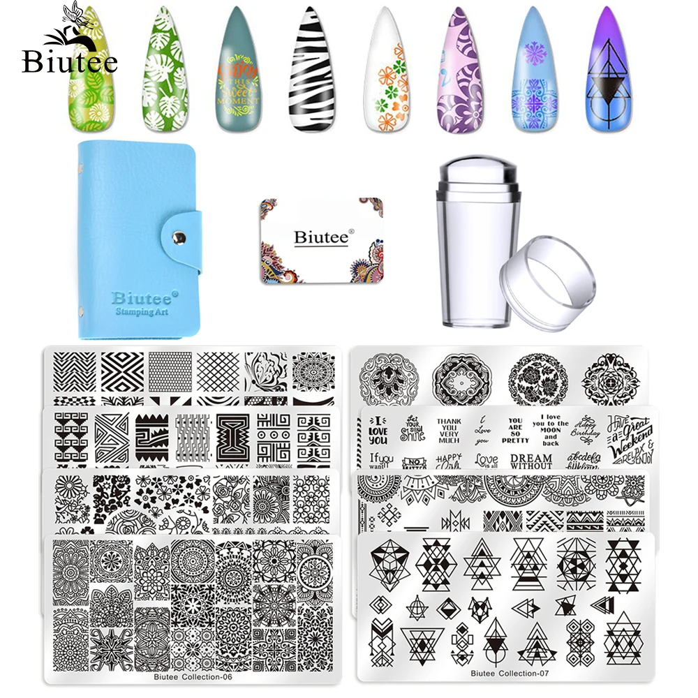 Квадратные штамповочные пластины Biutee для ногтей, 8 шт. + 1 набор штампов + 1 сумка для хранения, скребок для ногтей, пластина с изображением, маникюрный набор