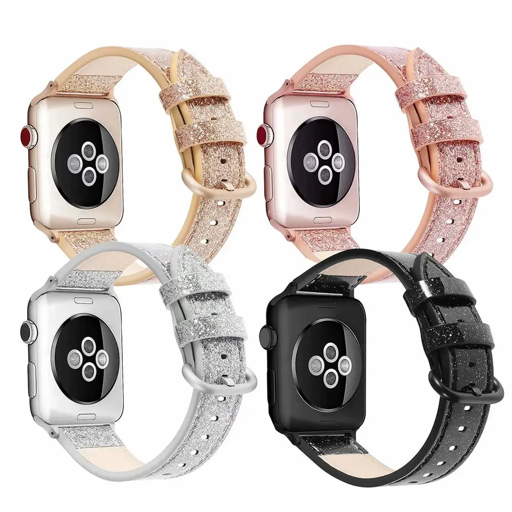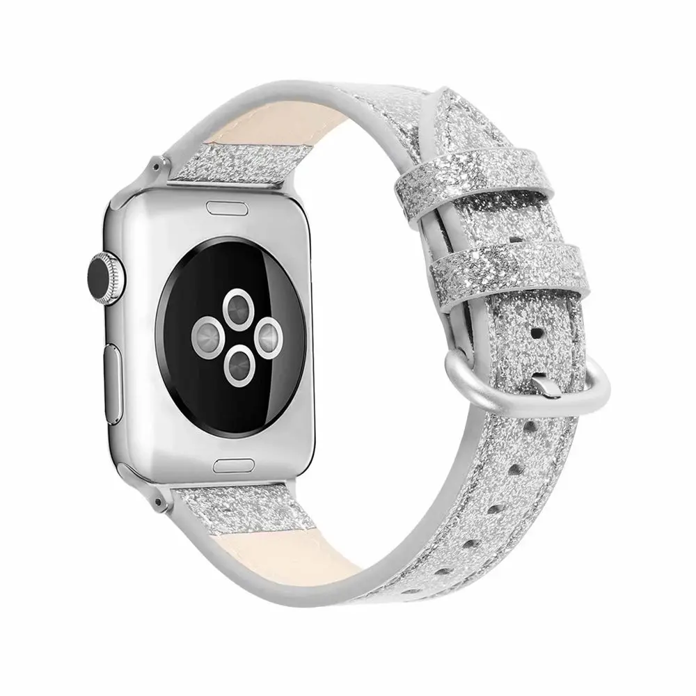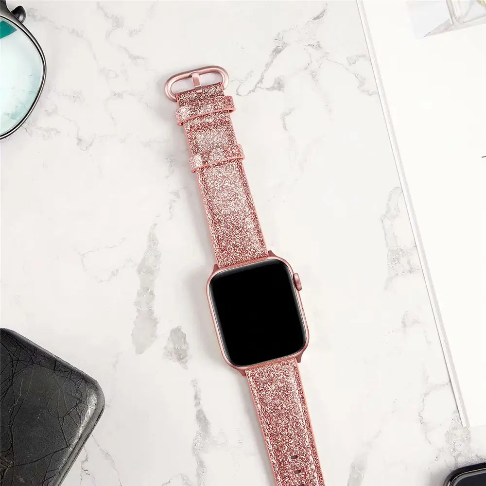 Блестящий ремешок из искусственной кожи с блестками для наручных часов Apple Watch Series 5, 4, 3, 2, 1, 44 мм, 40 мм, 38 мм, 42 мм, ремешок