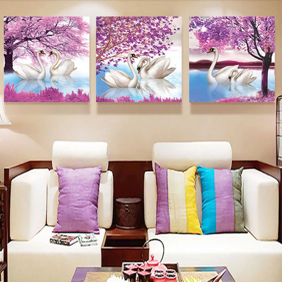Алмазная живопись квадратная круглая дрель Алмазная вышивка Вишневое дерево Лебедь 5D мозаика Триптих diy товары для рукоделия Декор AA2323