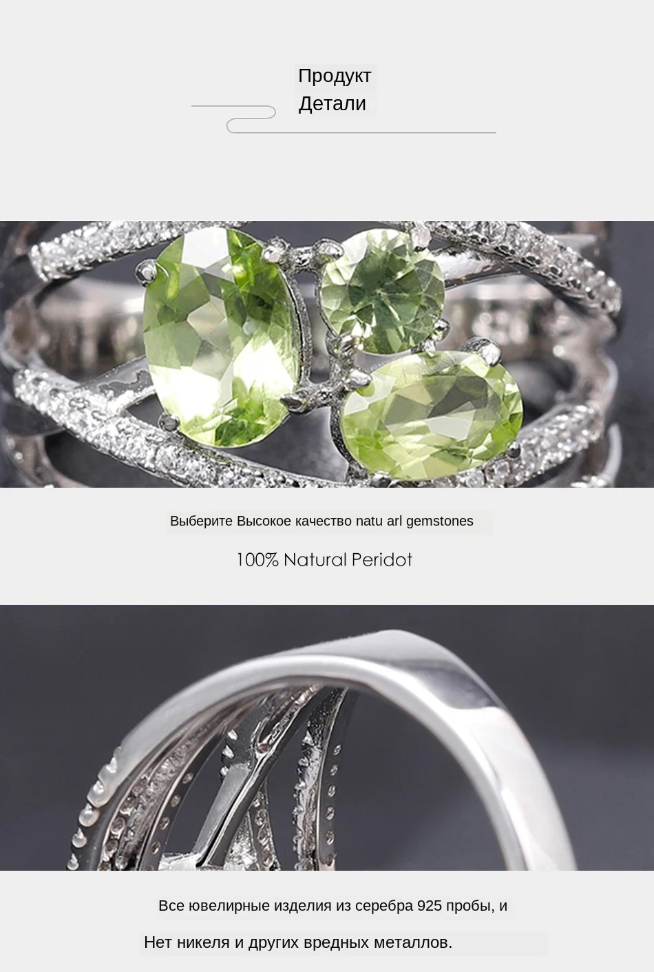 Кольцо женское из серебра 925 пробы, с натуральным Перидотом 1,69 карата