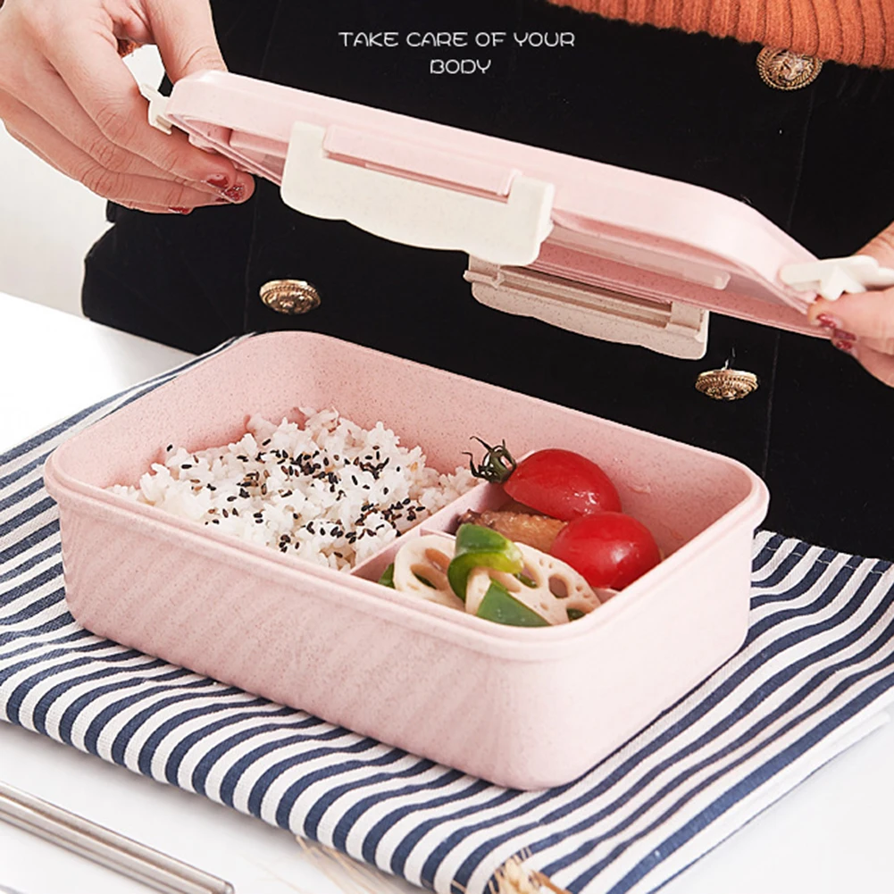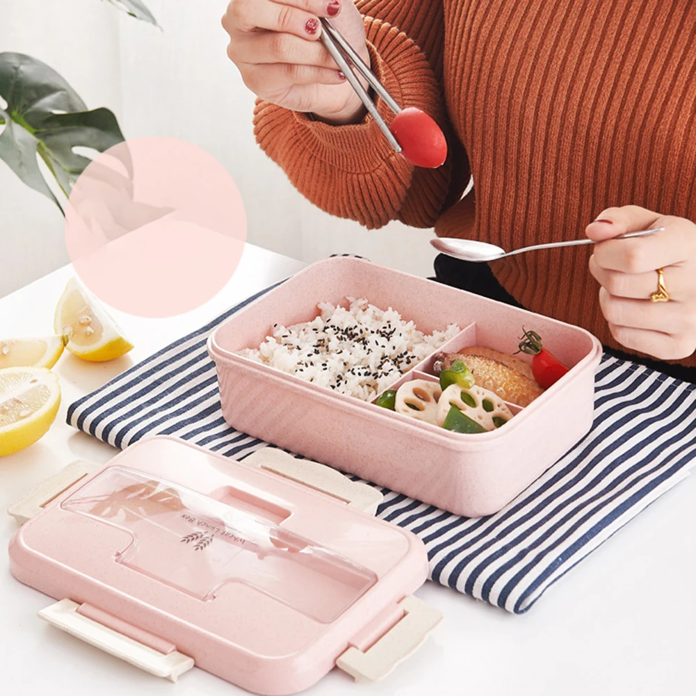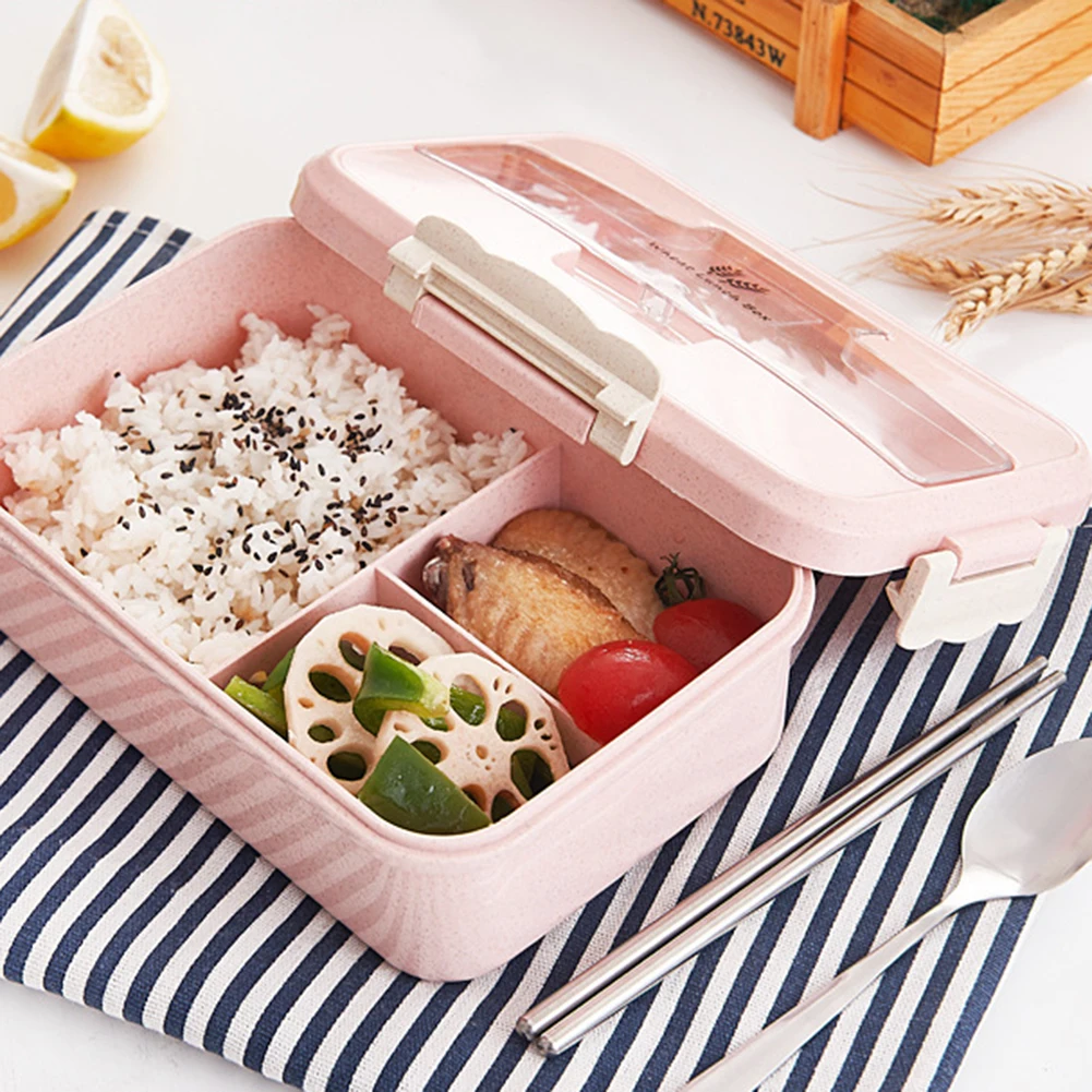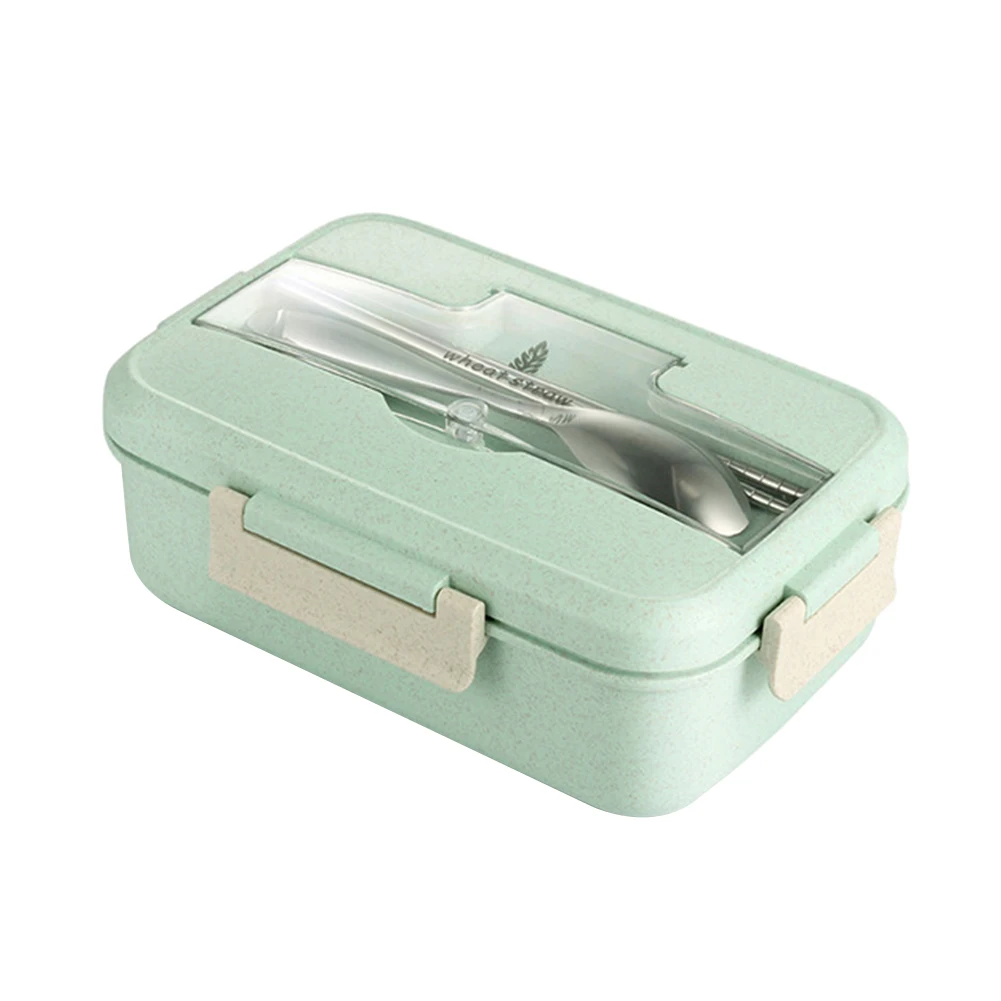 Ланч-бокс из нержавеющей стали Bento для микроволновой печи, контейнер с отсеками, ложка, палочки для еды, соломинка пшеницы, контейнер для хранения еды