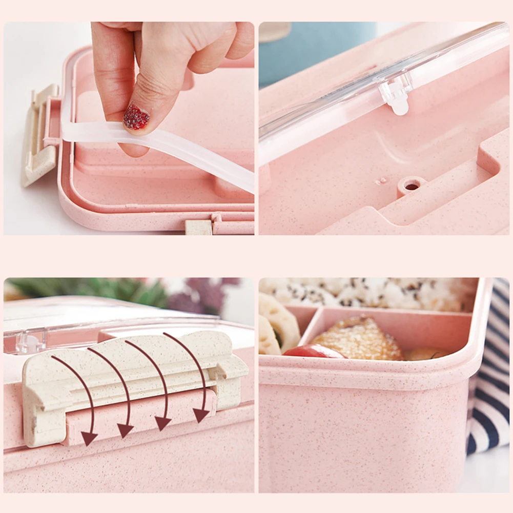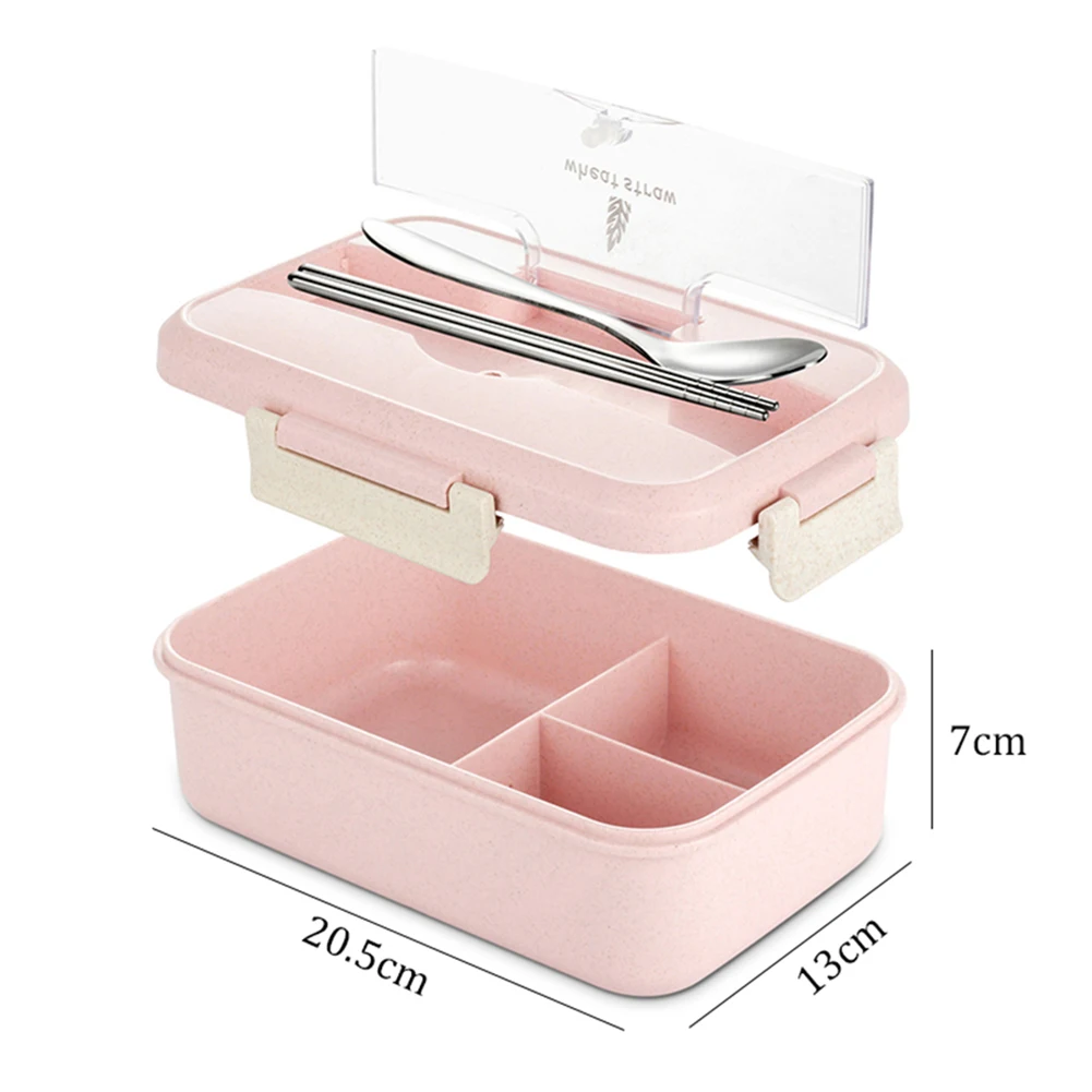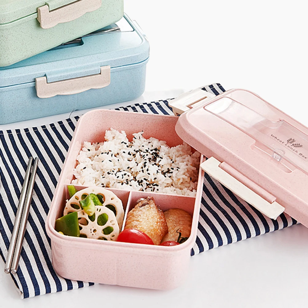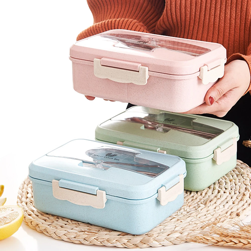 Ланч-бокс из нержавеющей стали Bento для микроволновой печи, контейнер с отсеками, ложка, палочки для еды, соломинка пшеницы, контейнер для хранения еды