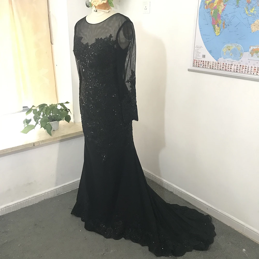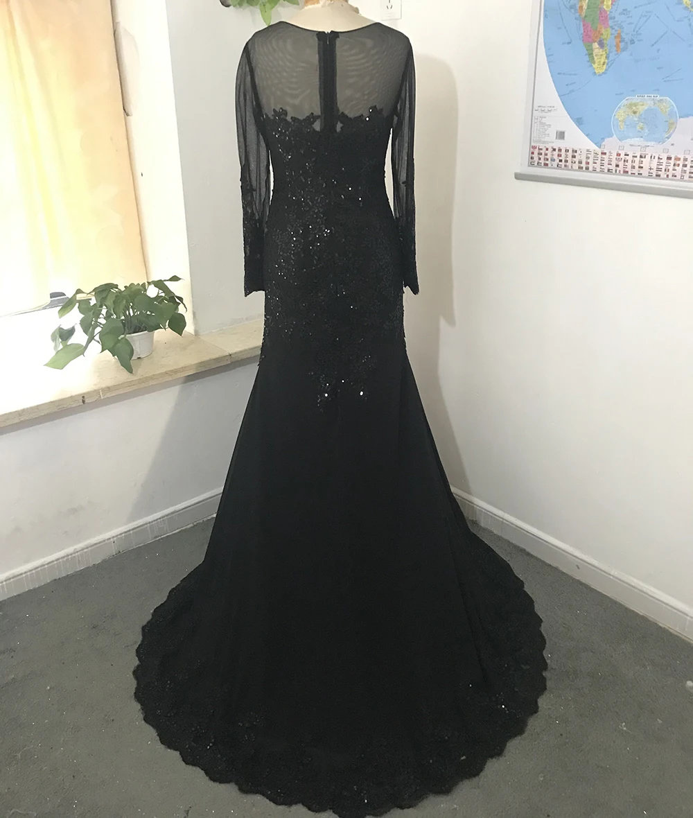 Черные мусульманские Вечерние платья 2020 Русалка с длинными рукавами аппликация кружева бисером исламский Дубай Саудовская Арабская длинное официальное вечернее платье