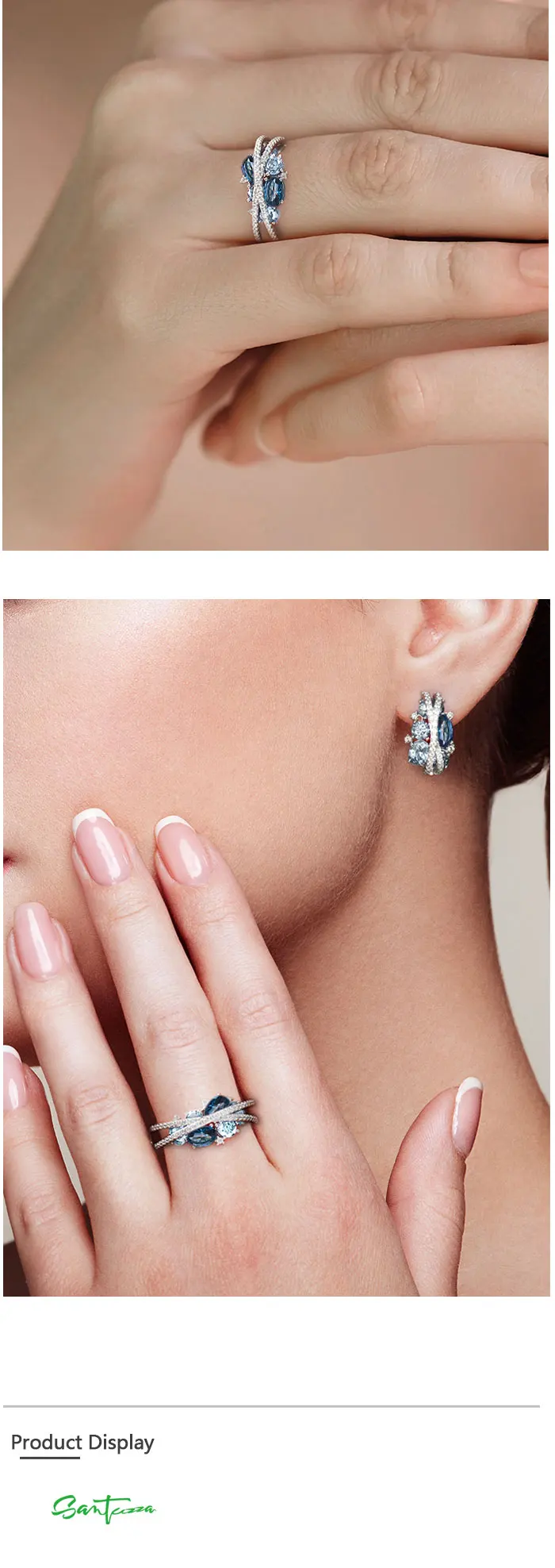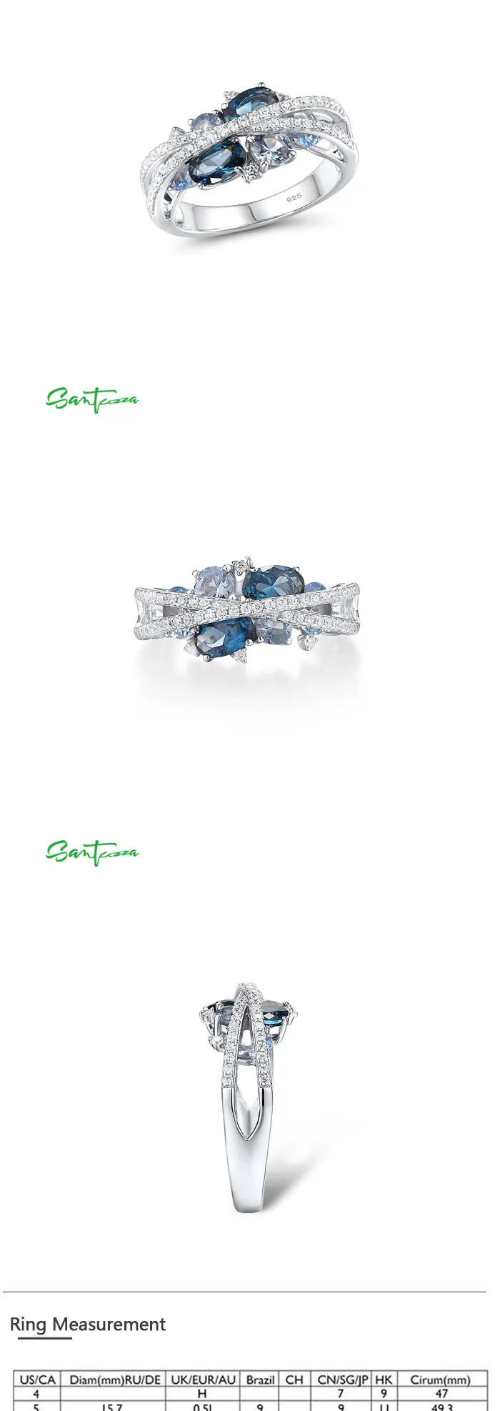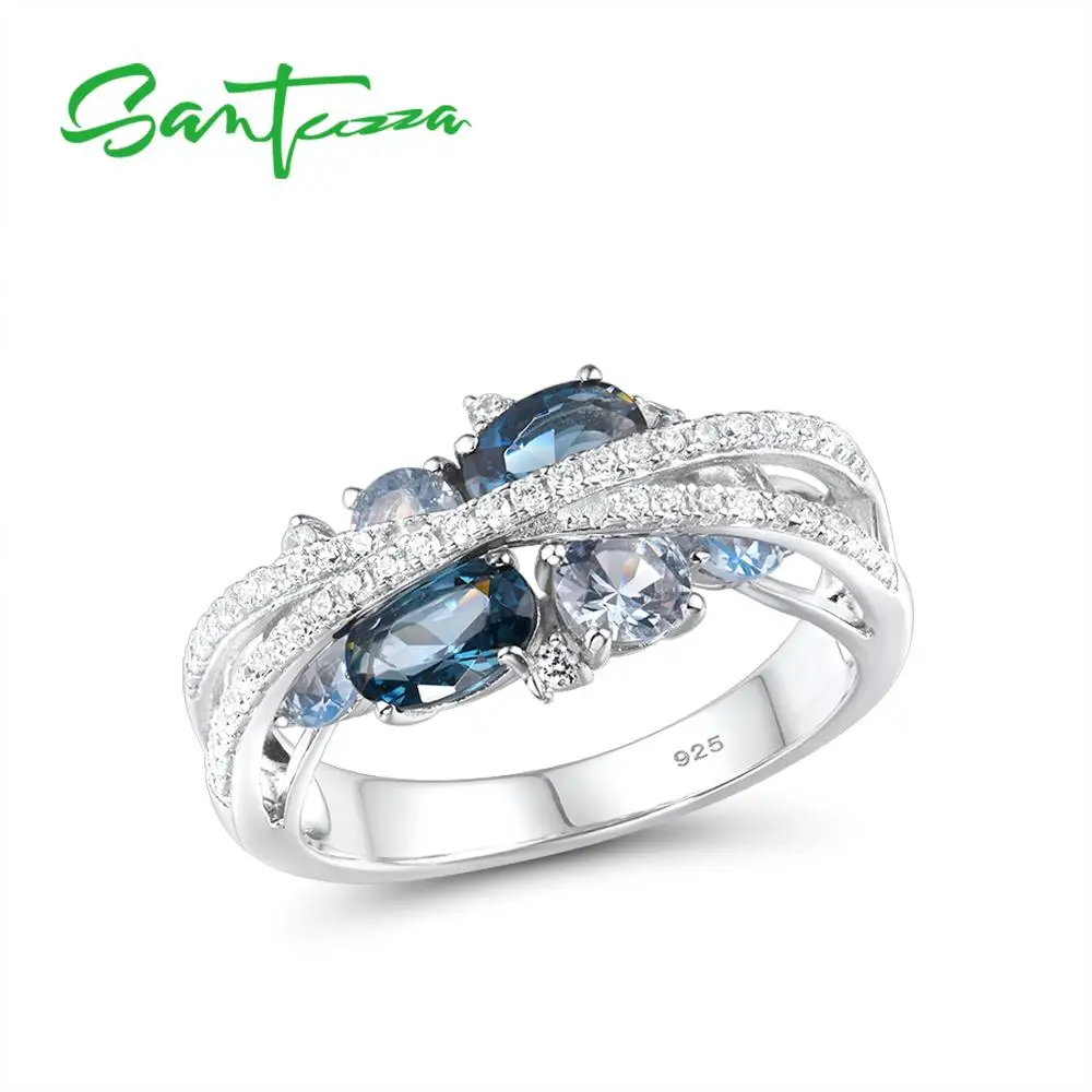 Женское серебряное кольцо SANTUZZA, из серебра 925 пробы, с мерцающей голубой шпинелью и кубическим цирконием, модные ювелирные украшения