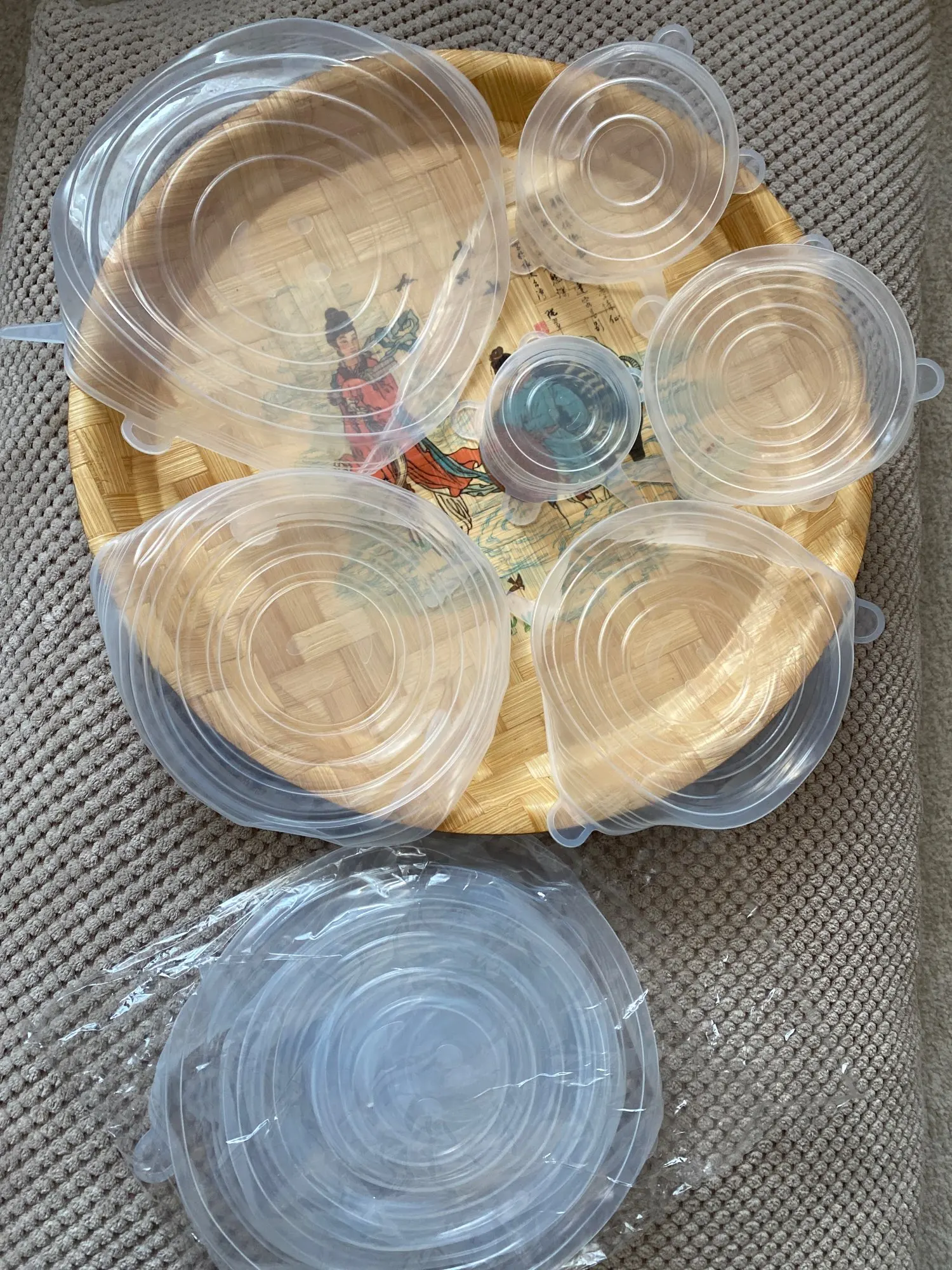 Заказал и получил все 12 шт. Я попробовал растянуть их, они могут растягиваться до половины своих размеров. Довольно прочный. Самый маленький вариант отлично подходит для покрытия чашки или кружки или фруктов смайлиарных размеров. Помогает уменьшить мешки ziploc или полиэтиленовую пленку, я думаю, что это отлично подходит для окружающей среды. Рекомендуется.