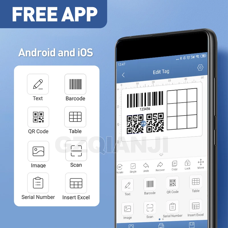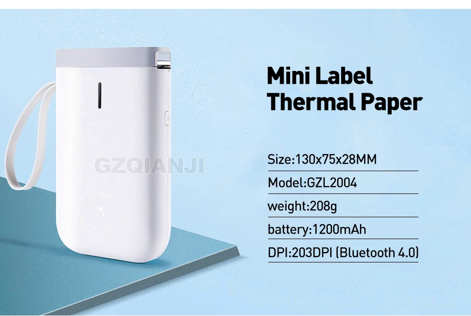 Беспроводной дизайн, поддерживает печать на большие расстояния.Беспроводное расстояние до 10 м.Прямой тепловой, без чернил, тонера или лент.Поддерживает все основные форматы этикеток: цена, дата, размер, вес, имя и т. д.Универсальный, простой в использовании.Компактный и легкий, удобный для переноски.Аккумулятор емкостью 1200 мАч поддерживает длительное использование.Характеристики: