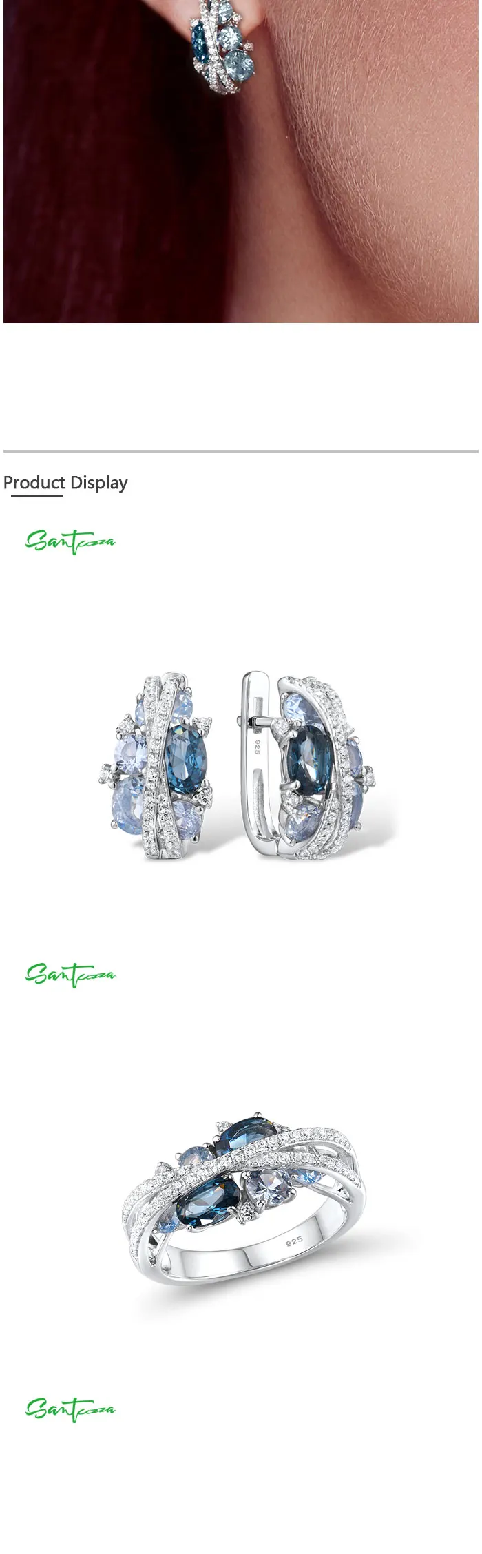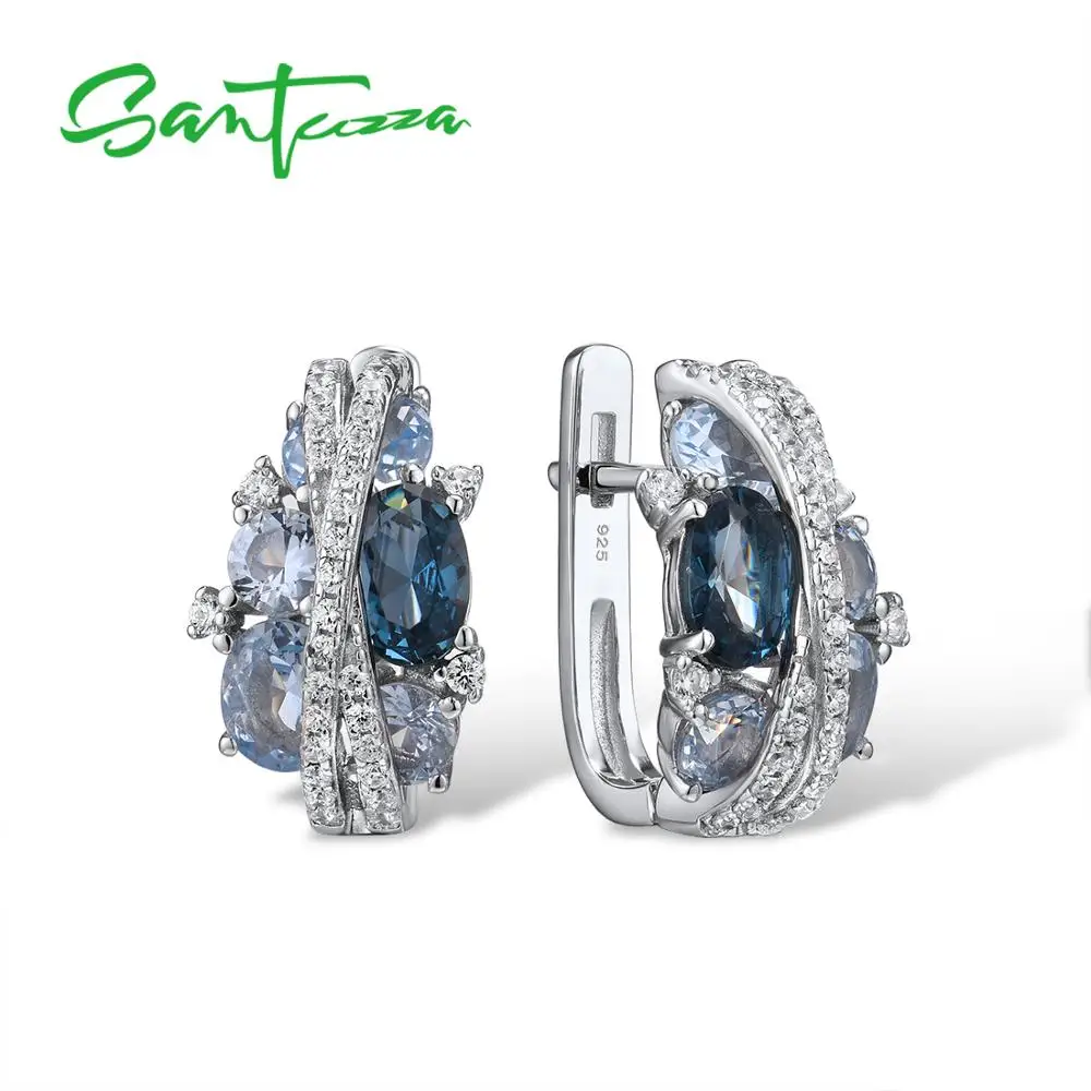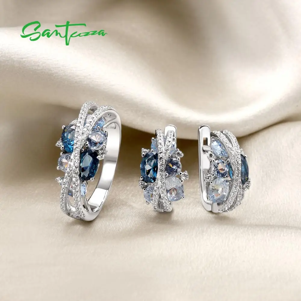 Серьги и кольцо SANTUZZA, из серебра 925 пробы, со сверкающей голубой шпинелью, набор украшений для женщин пробы