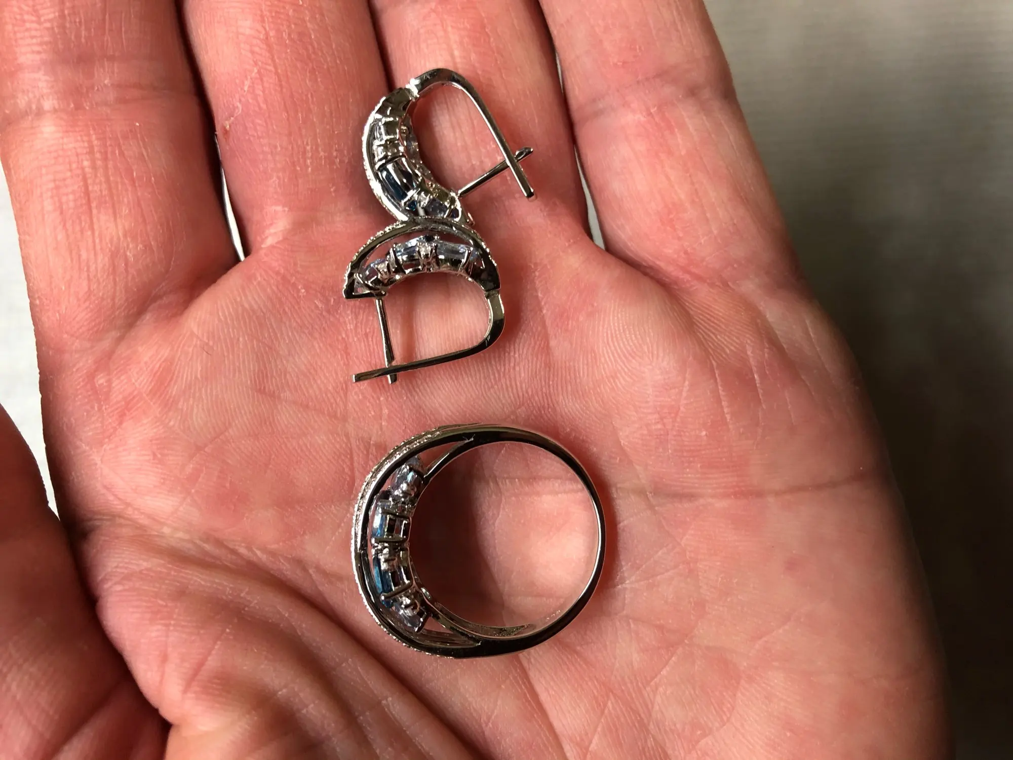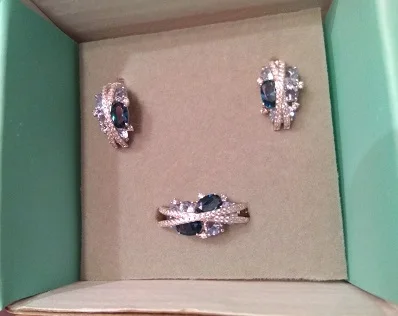 Очень шикарный комплект. В живую он выглядит круче, чем на фото. Китайский размер кольца 6,5 подошёл на мой 16,5 на безымянный палец. Сережки просто восторг. доставка очень быстрая. Заказала 11.11, получила на Новой почте 22.11. Очень рекомендую этот магазин. Да, со скидкой и спецкупоном комплект обошёлся в 22.30 долларов США.