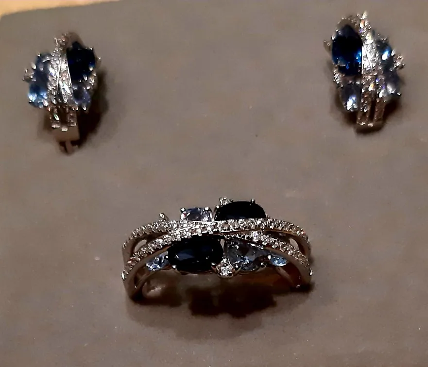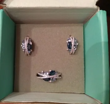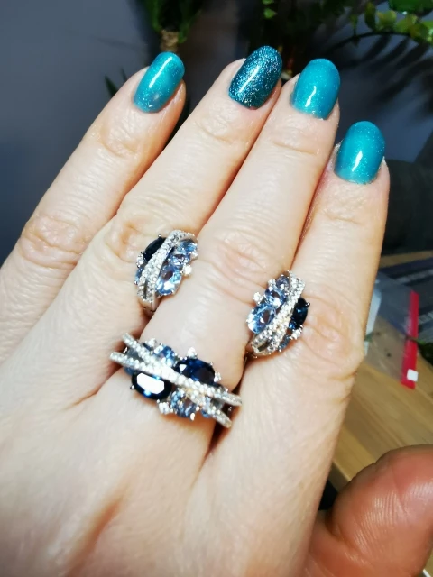 оплатила 11/11/20, продавец отправил 13/11 и 28/11/20 я получила свой заказ. Упаковано было очень хорошо: в почтовый пупырчатый пакет и внутри в картонную фирменную коробку, серьги и кольцо были в индивидуальных зип-пакетах. Набор красивый, серьги небольшие и аккуратные, легкие, камни переливаются, есть S925, удобная английская застёжка, никакой реакции не было, значит таки серебро. На окружность пальца 54 мм размер кольца 7 подошел отлично, мне кольцо показалось не слишком удобным из-за двойных полосок с камнями. P.S. продавец общительный, быстро выходит на связь, трэк отслеживался на протяжении всего пути. По Украине доставили Новой Почтой.