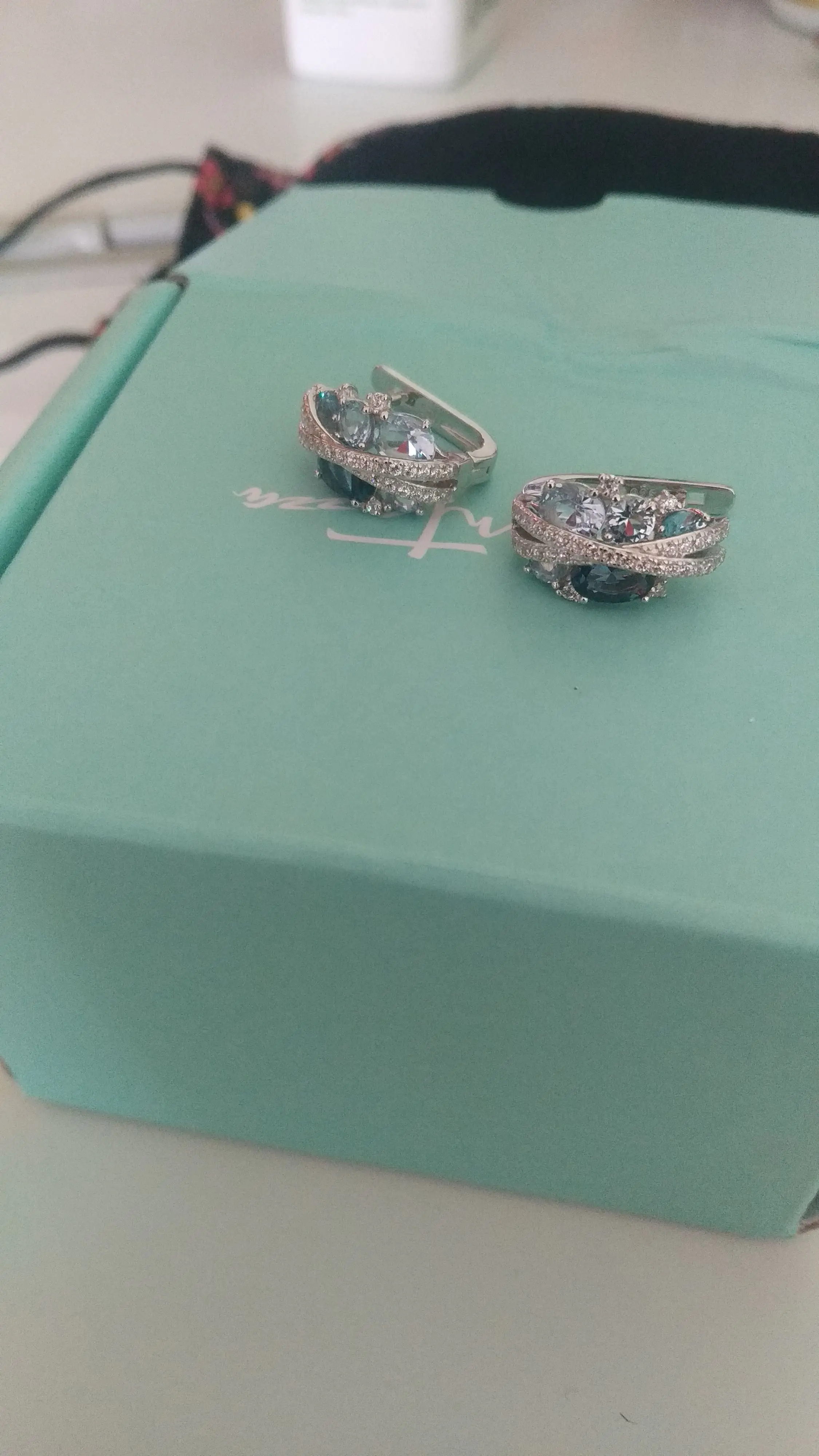 Классные украшения! Коробочка не подарочная, но все равно красивая, мятного цвета, очень плотная. Довольна!