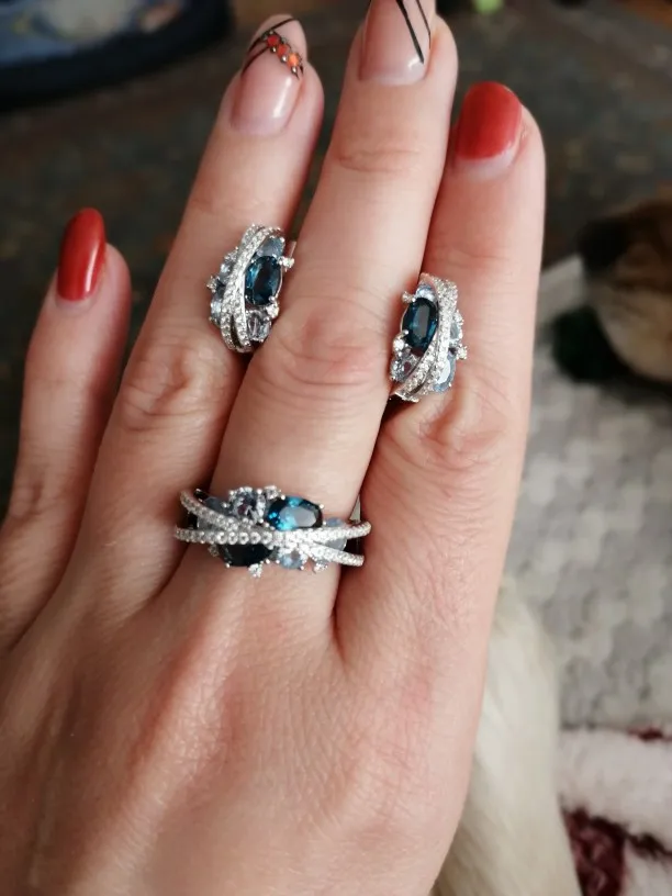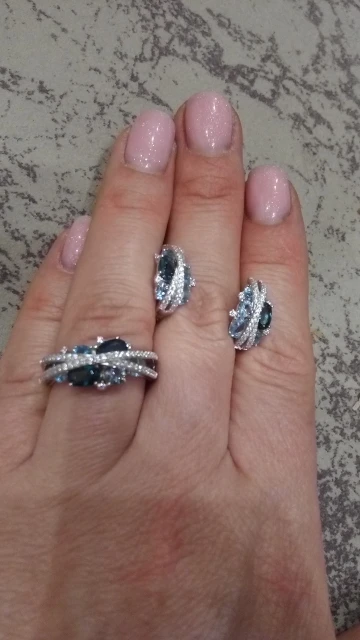 Это шикарный набор и оригинальная модель !!!Камень как настоящий лондон-топаз!!!РЕКОМЕНДУЮ!Размер 6 на наш р.16