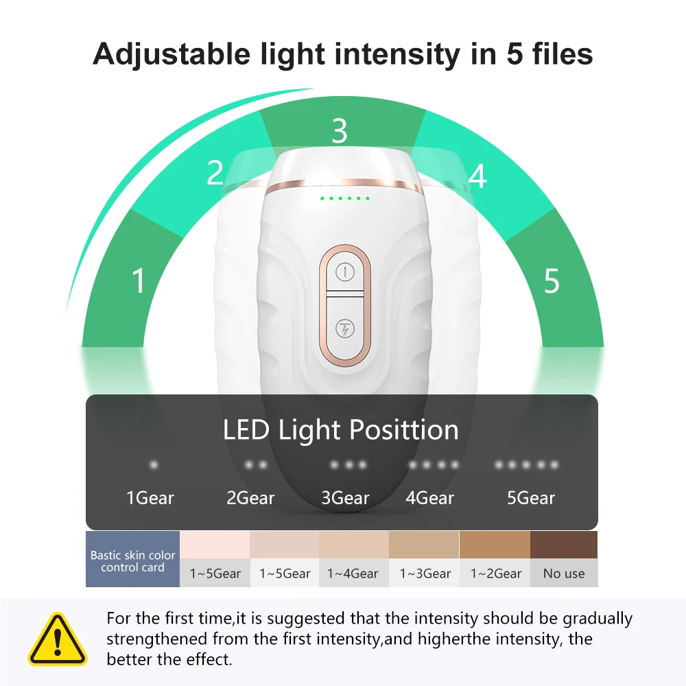 (6) 5 рычагов интенсивности света, подходит для разных людей. Вы можете выбрать уровень согласно вашей коже и цвету волос
