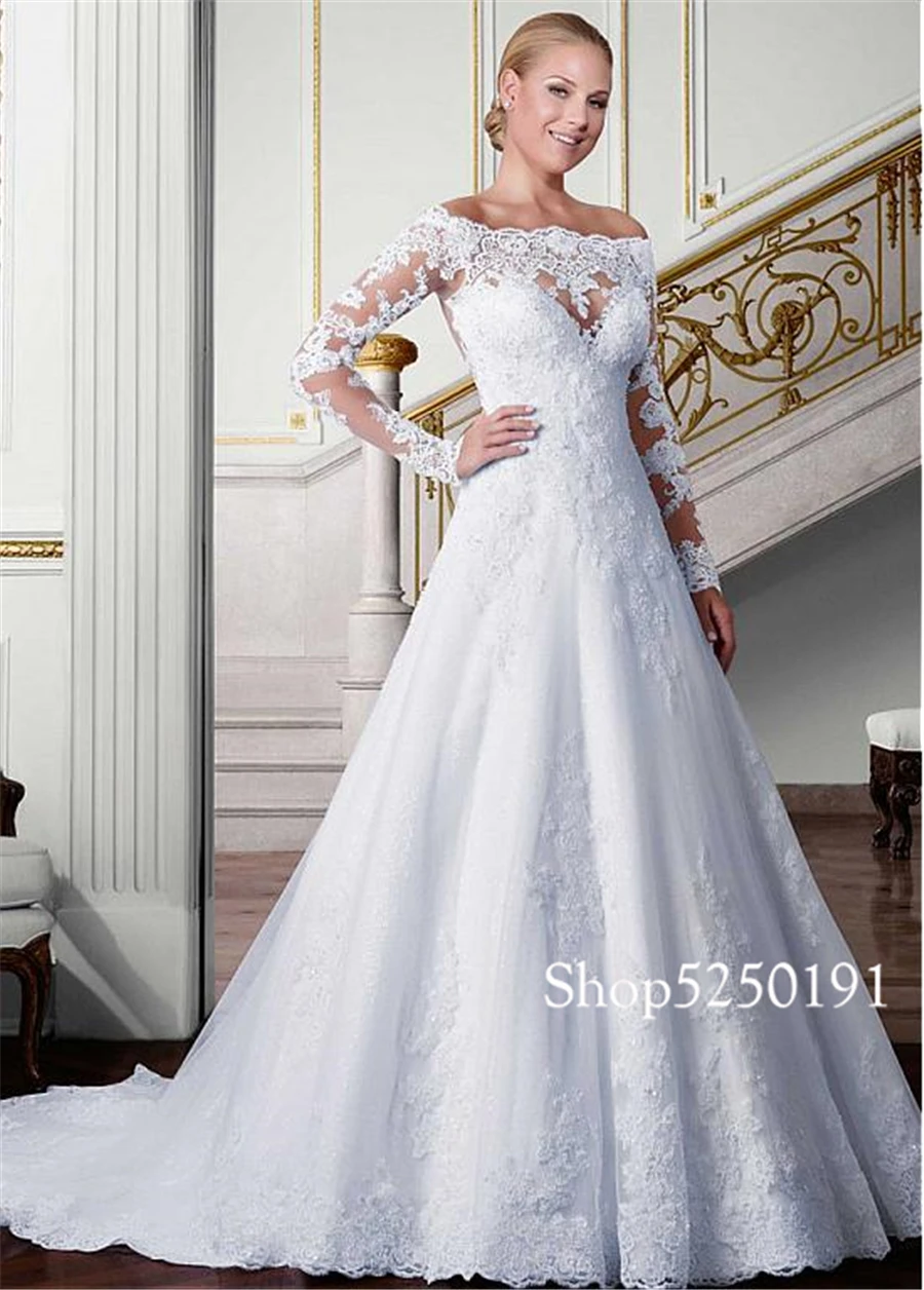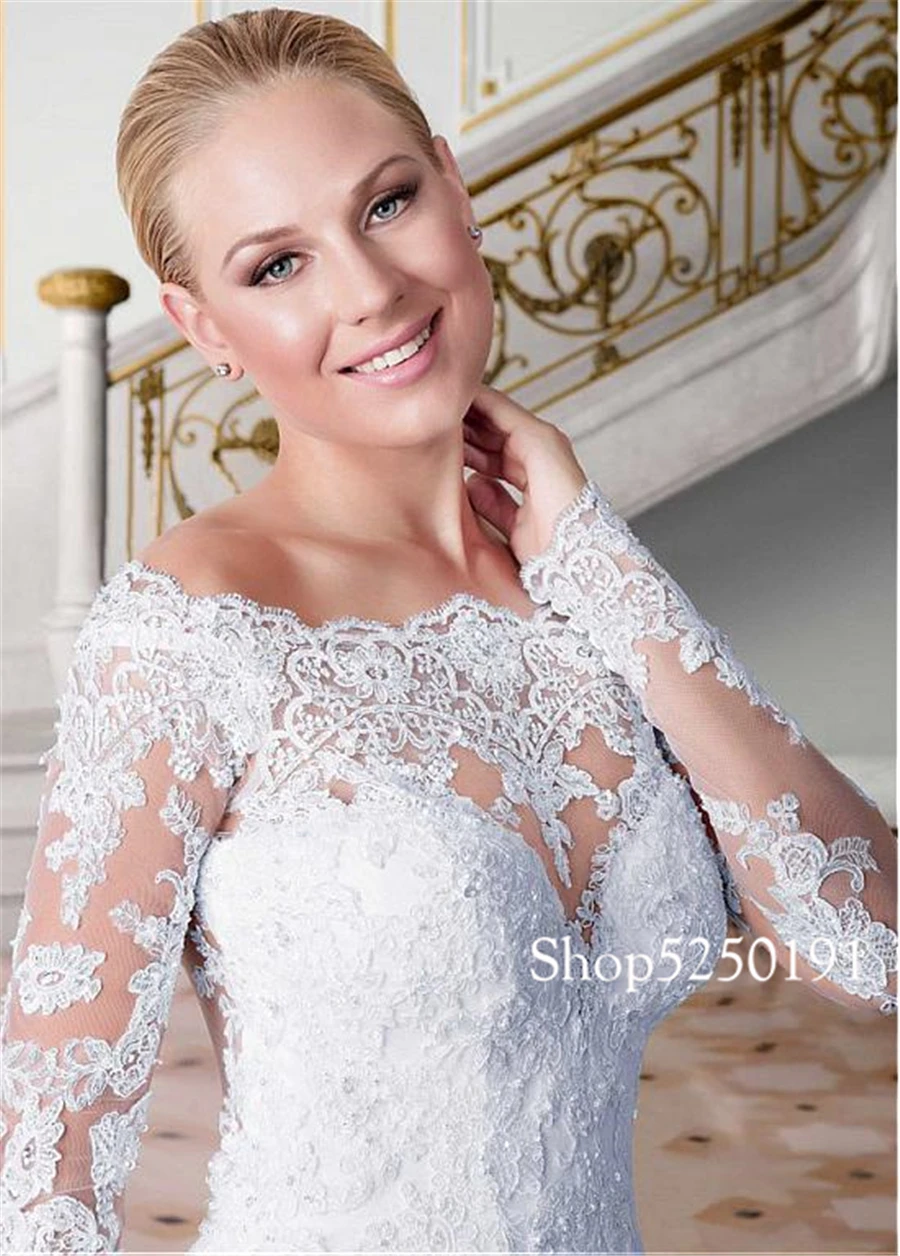 Изысканное Тюлевое ТРАПЕЦИЕВИДНОЕ свадебное платье с открытыми плечами и вырезом, свадебное платье чистого белого цвета с длинными рукавами и кристаллами, свадебное платье в бразильском стиле
