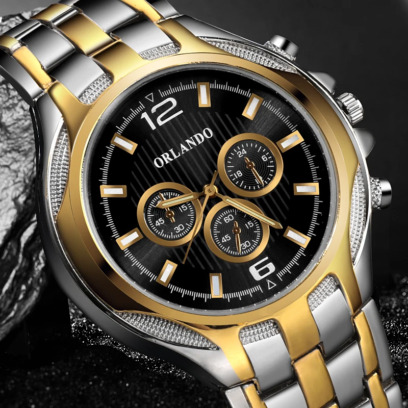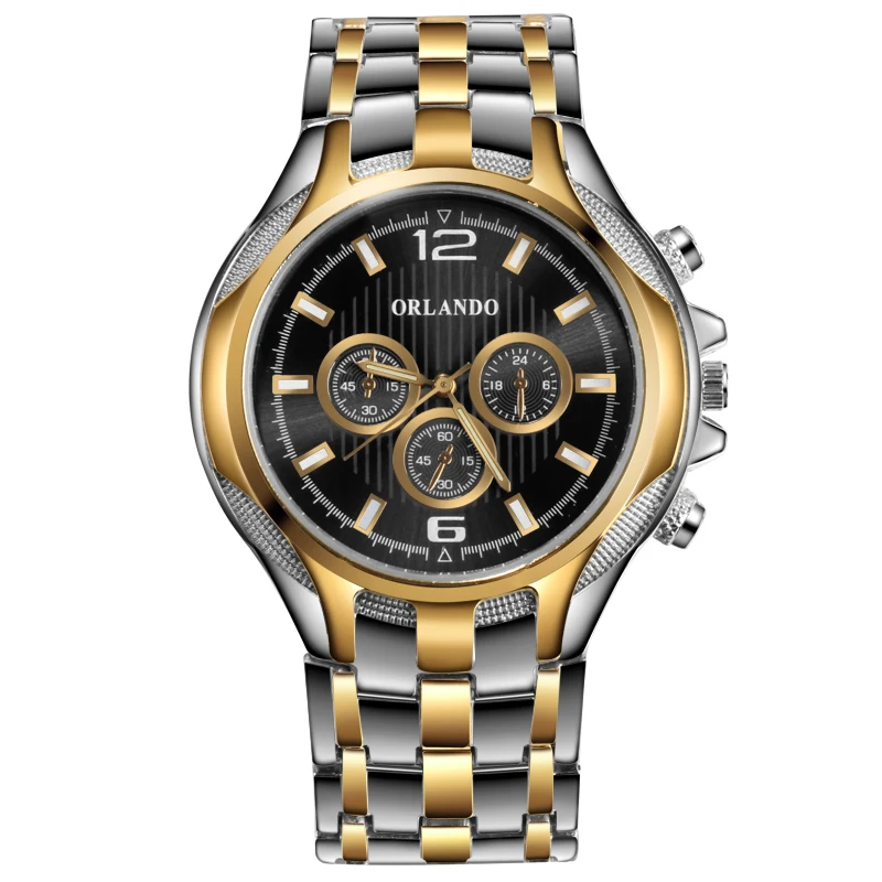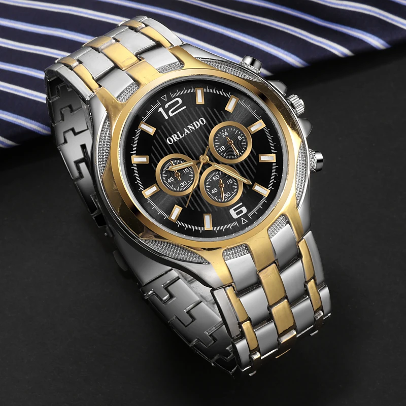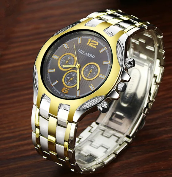 Часы мужские, кварцевые, серебристые, позолоченные, из нержавеющей стали
