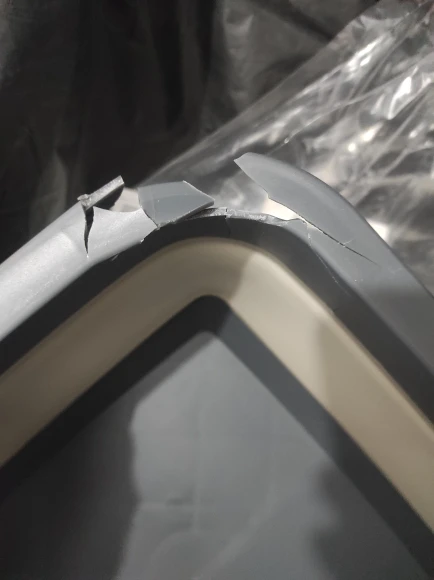 пришёл бракованный. на всех углах трещины, на одном дыра.