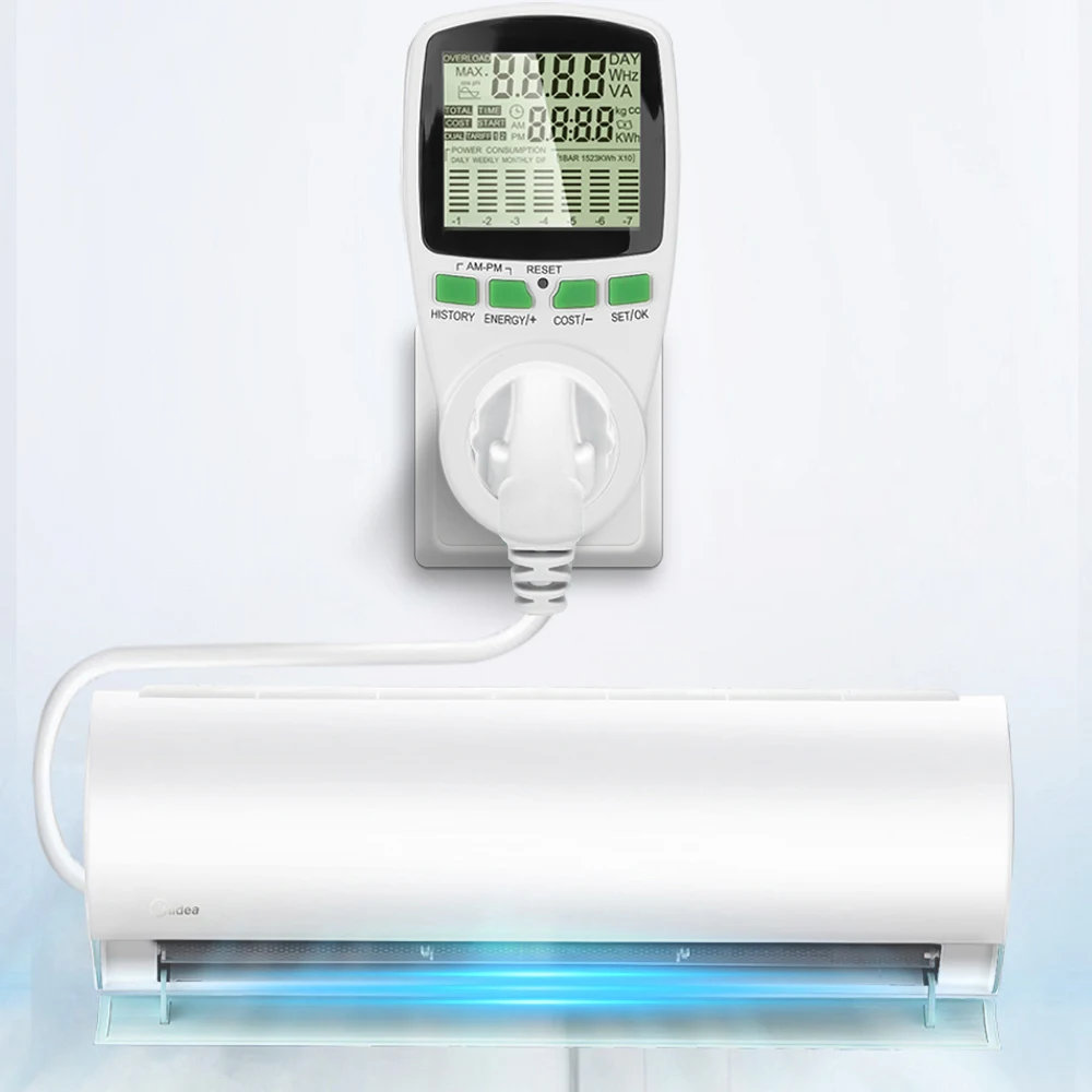 Умный счетчик электроэнергии с розеткой переменного тока, кВтч, измеритель мощности с монитором, анализатор мощности