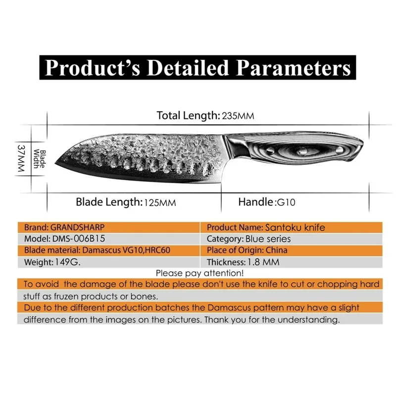 Изготовлен из 67-слой дамасской Сталь импортируется из Японии. VG-10 стальной режущий сердечник;