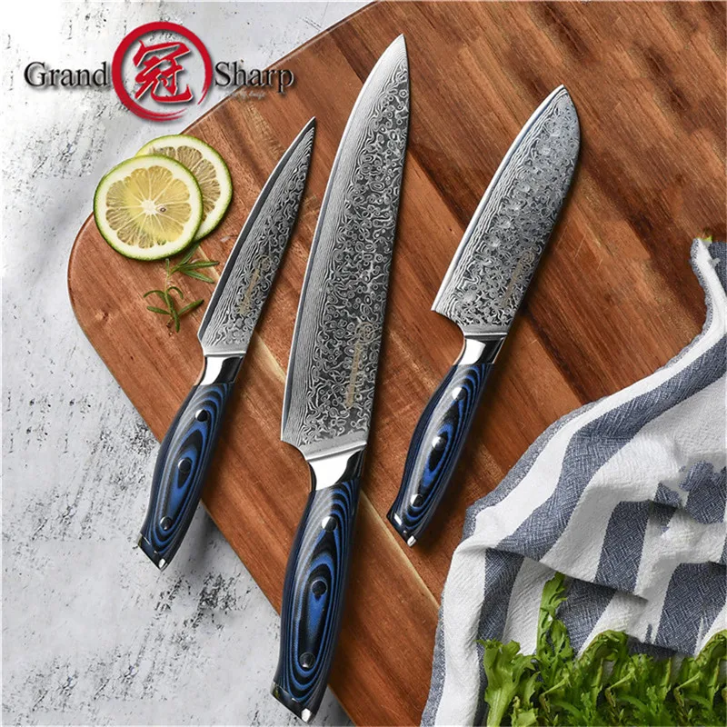 3 шт., встроенные японские кухонные ножи из дамасской стали