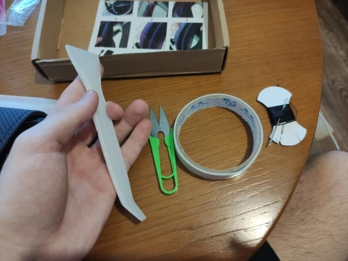 Крышка рулевого колеса *1Игла *1Нить *1Двусторонняя клейкая лента *1Лезвие *1Наперсток *1
