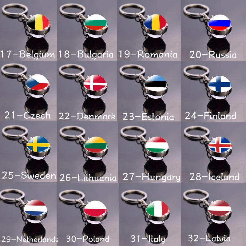 Брелок для ключей со стеклянным шаром, флагом стран мира