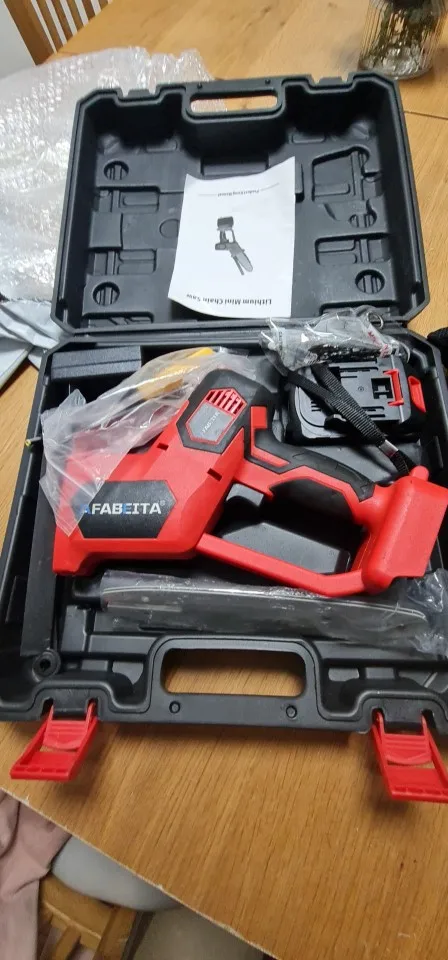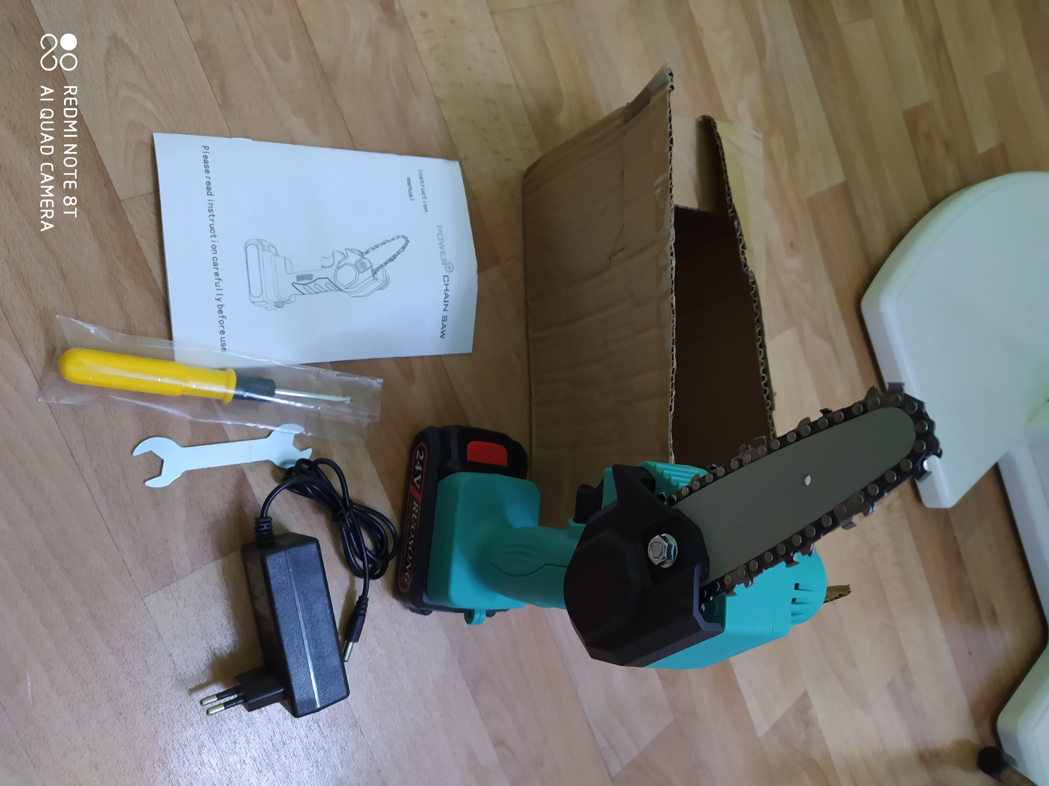Заказ был 11.11 Получил 11.01 . Радости особо не получил. качество как б/у. Мощность 5 м/с указано в документах, на аппарате надпись - 4,8 м/с. Шурик крутит быстрее чем пила. Просто чудо что всё целое. Реально сучкорез. Елку после праздников распилить. После сборки кейс становиться лишним. Надо разобрать и в чемодан. Блок питания для зарядки очень лёгкий и вызывает Сомнения в надёжности. Перед покупкой стоит задуматься о его необходимости