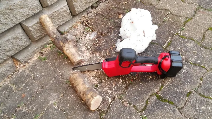 Хорошая пилка, маленькая режущая часть, но для мелких работ в саду очень даже подойдет. нет защиты от включения - лучше держать аккумулятор отдельно, чтоб не пораниться.
