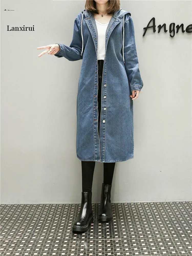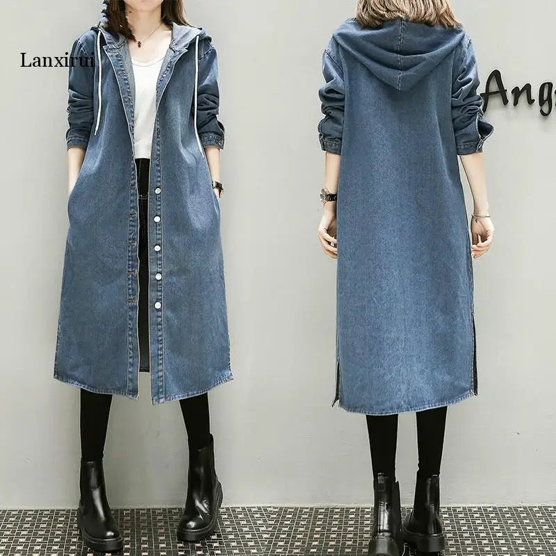 Женское джинсовое пальто, тонкое Свободное длинное пальто большого размера, весна-осень-зима, XL-5XL